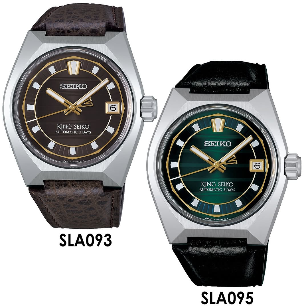 Seiko ujawniło dwa dodatki do serii King Seiko Vanac z podobną kanciastą geometrią koperty widoczną w niektórych wcześniejszych modelach. Nowe referencje to SLA093 z brązową tarczą i złotymi znacznikami oraz SLA095 z zieloną tarczą z tymi samymi złotymi akcentami. Oba zegarki wykorzystują kopertę ze stali nierdzewnej o wymiarach 41 × 14,3 × 45,1 mm, zgodnie z ogłoszeniem udostępnionym przez @plus9time.
