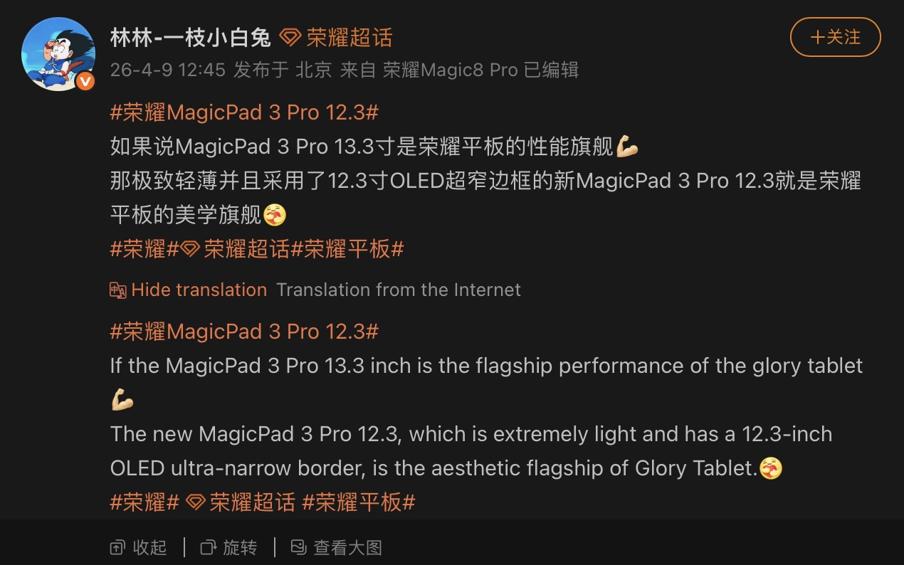 Post Weibo ujawnił również, że 12,3-calowy tablet OLED MagicPad 3 Pro będzie ważył zaledwie 440 gramów, czyli około 14,11 uncji. Ogólna konstrukcja tabletu wydaje się być identyczna z wariantem wyposażonym w matrycę IPS, z podwójnymi kamerami z tyłu i ultracienkimi ramkami z przodu. Inne szczegóły dotyczące tabletu nie zostały jeszcze ujawnione, to samo dotyczy jego ceny i dostępności.