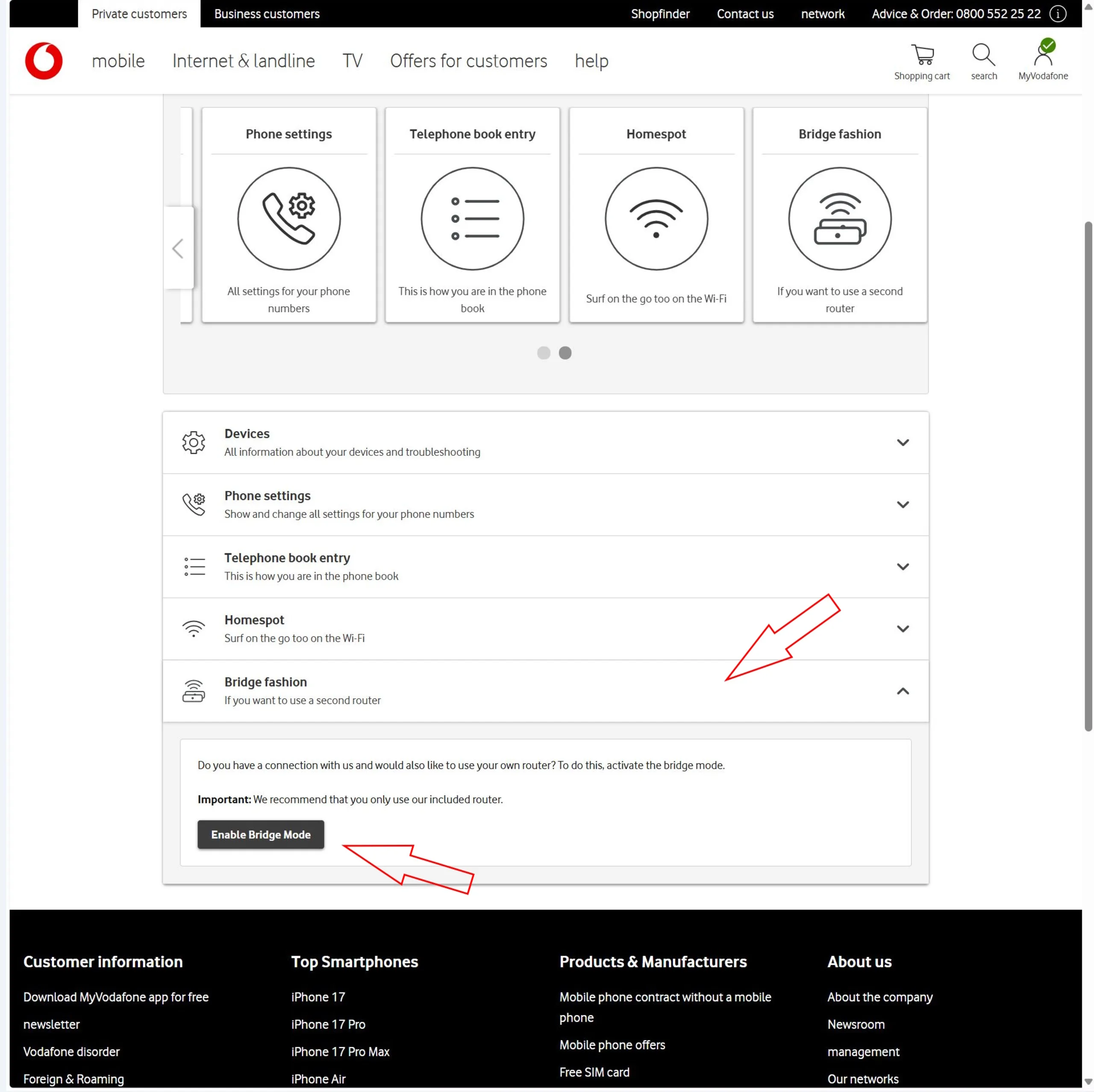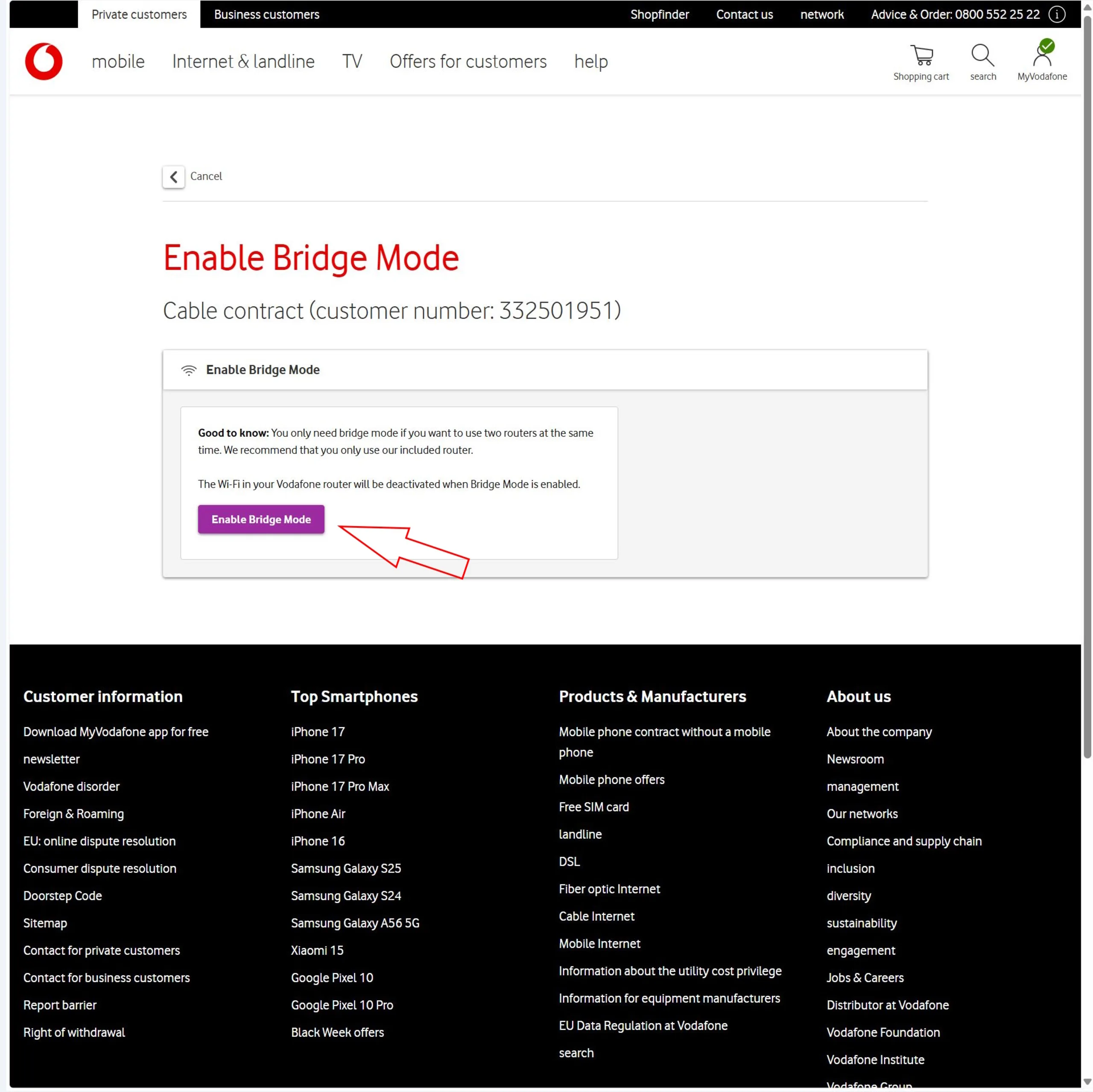 Aktywacja trybu pomostowego na koncie Vodafone