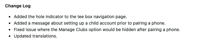 W dzienniku zmian wymieniono również poprawkę błędu związaną z funkcją zarządzania klubami. Problem, w którym funkcja ta była nieoczekiwanie ukrywana po sparowaniu smartfona, został rozwiązany. Wraz z tym, wydanie przynosi zaktualizowane tłumaczenia do smartwatcha golfowego.