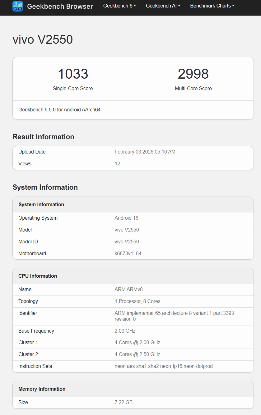 Niedawny wyciek Geekbench potwierdza twierdzenie PassionateGeekz, choć pozostaje niejasne, czym Dimensity 7360 Turbo różni się od zwykłego Dimensity 7360. Niezależnie od tego, V70 FE ma również wykorzystywać baterię o pojemności 7000 mAh, która obsługuje przewodowe ładowanie 90 W oraz 6,83-calowy wyświetlacz AMOLED o rozdzielczości 1,5K i częstotliwości odświeżania 120 Hz.