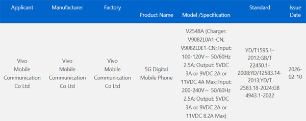 Teraz Vivo certyfikowało X300 Max w Chinach przed jego premierą na rodzimym rynku Vivo. Noszący numer modelu V2548A, X300 Max powinien znaleźć się powyżej X300 i X300e podobno X300e ale poniżej X300 Pro i X300 Ultra. Digital Chat Station wskazuje, że może istnieć również drugi wariant X300 Max; szczegóły dotyczące tego modelu pozostają jednak na razie nieznane.