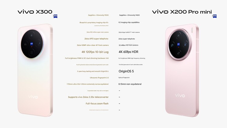 Jednak zaledwie kilka godzin przed premierą, Weibo leaker Digital Chat Station dostarczył bardzo szczegółowych informacji na temat specyfikacji Vivo X300 Pro i Vivo X300. W przypadku tego drugiego, pojawiło się również oficjalne porównanie niektórych danych technicznych z Vivo X200 Pro Mini, którego Vivo X300 najwyraźniej będzie następcą.
