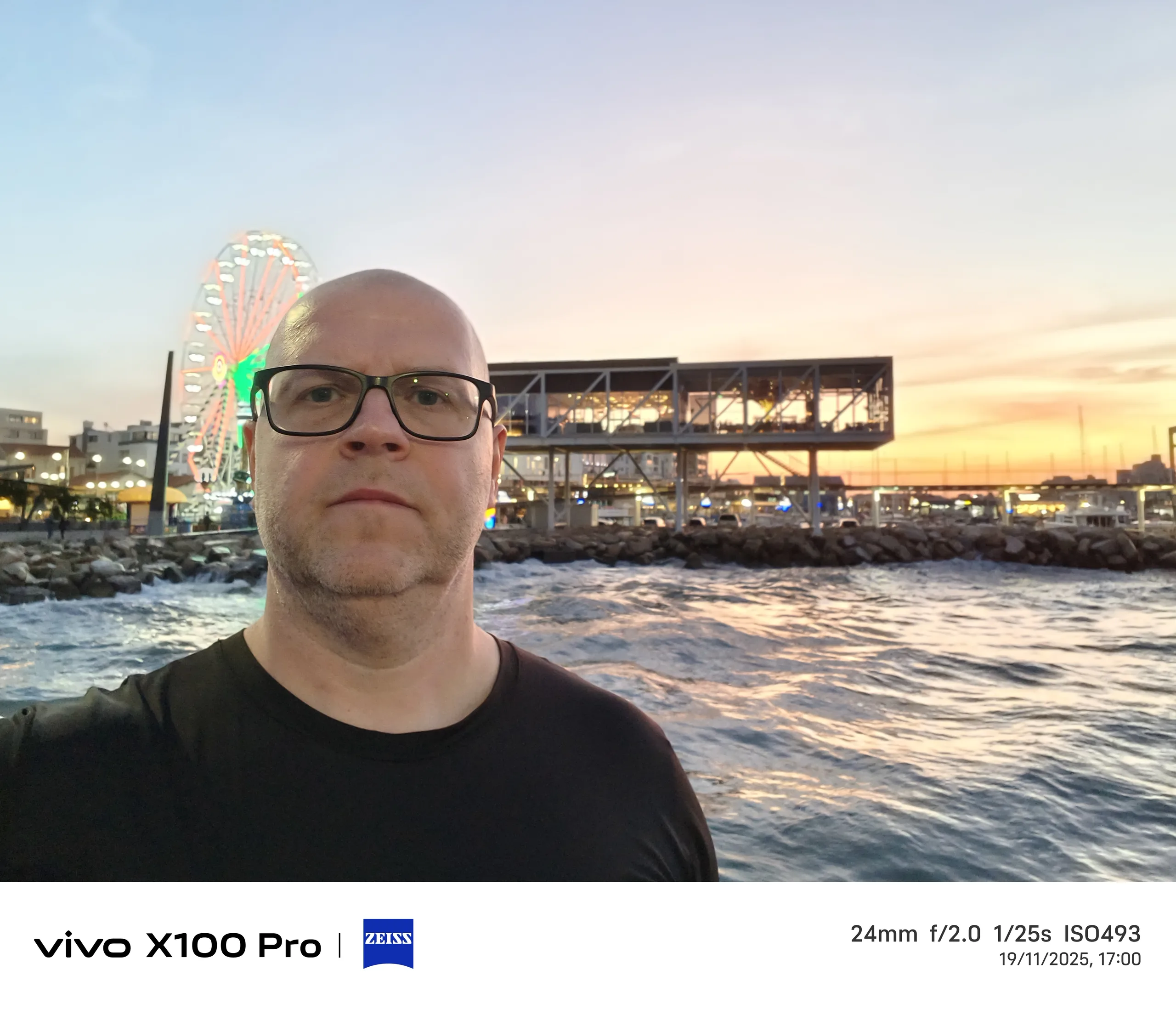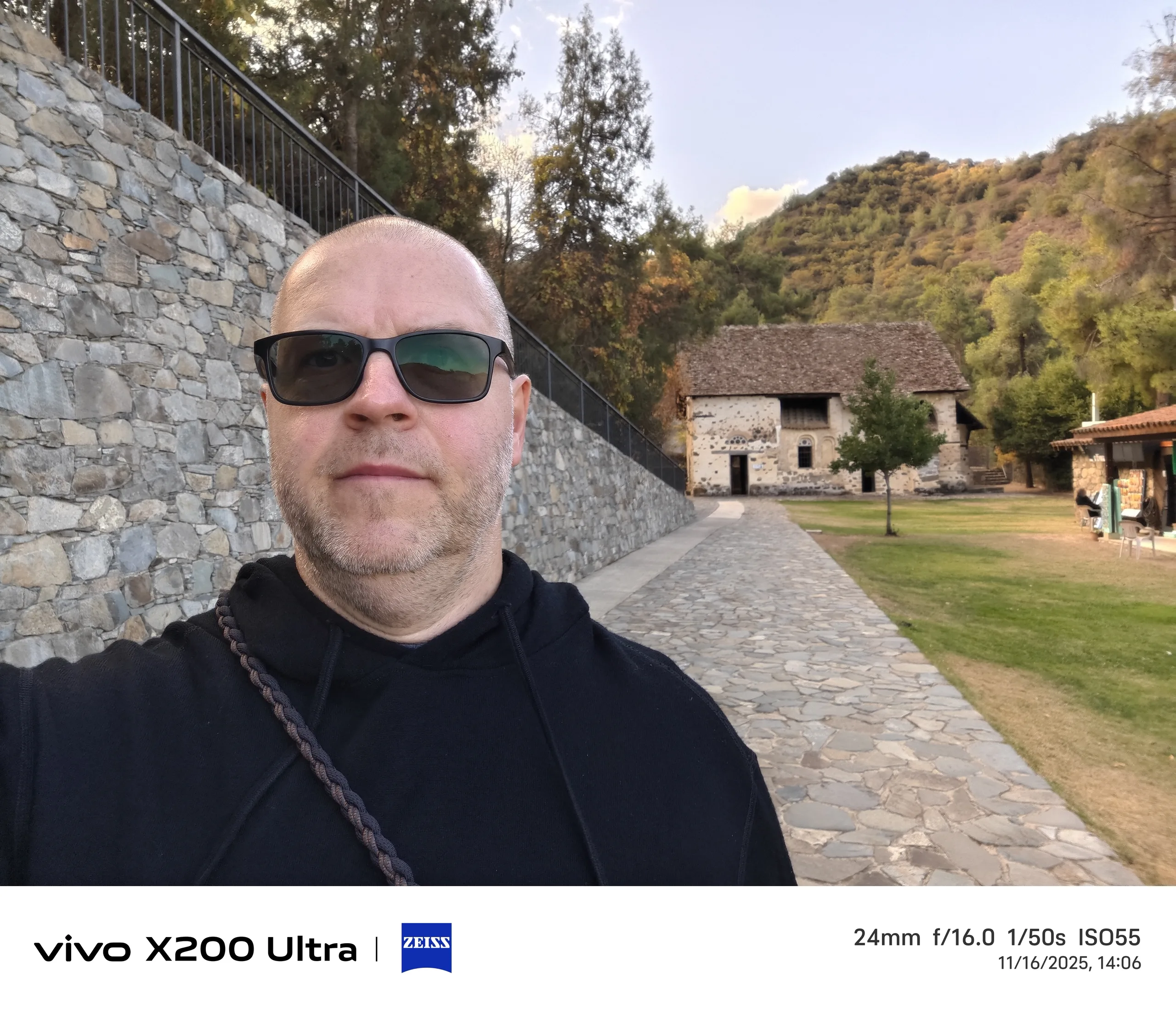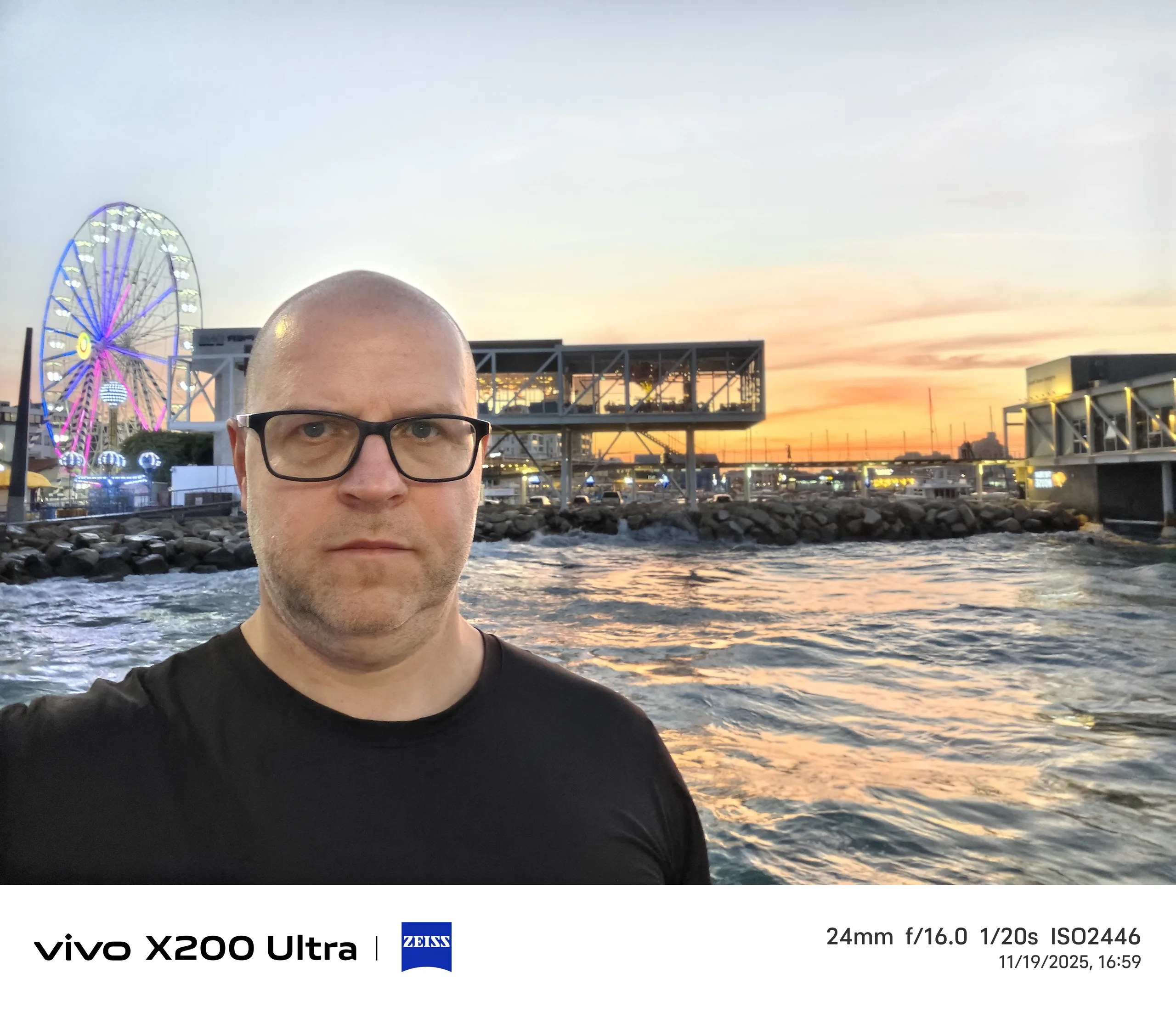 Nie jestem wielkim fanem selfie, ale w interesie nauki zrobiłem kilka selfie w różnych miejscach i w różnych warunkach oświetleniowych. Moim zdaniem Vivo X300 Pro znacznie poprawił się pod względem jakości selfie w porównaniu do Vivo X200 Ultra. W większości przypadków najnowszy flagowiec Vivo zapewnia najbardziej naturalnie wyglądający obraz z całego kwartetu, nie tylko dzięki zauważalnie szerszemu polu widzenia, ale także pod względem odcieni skóry - przynajmniej w moim przypadku. W ostatnim przykładzie, z zachodem słońca służącym jako źródło podświetlenia, Vivo X300 Pro również nieco walczy.