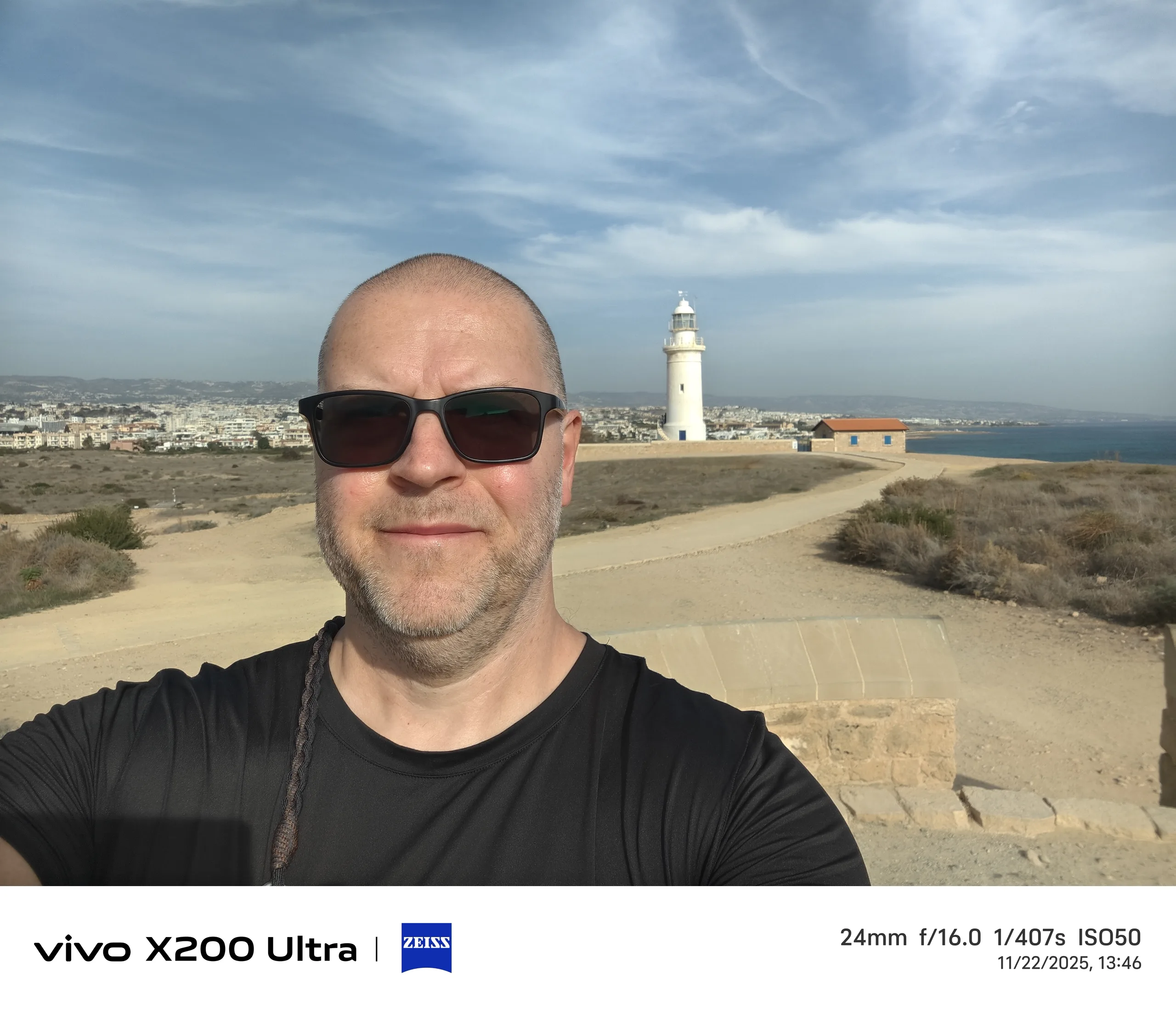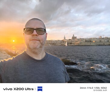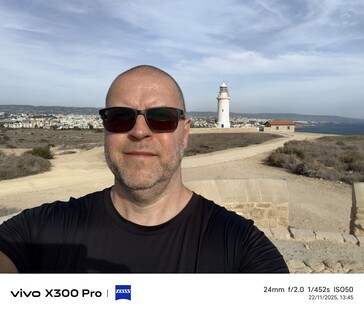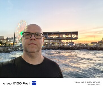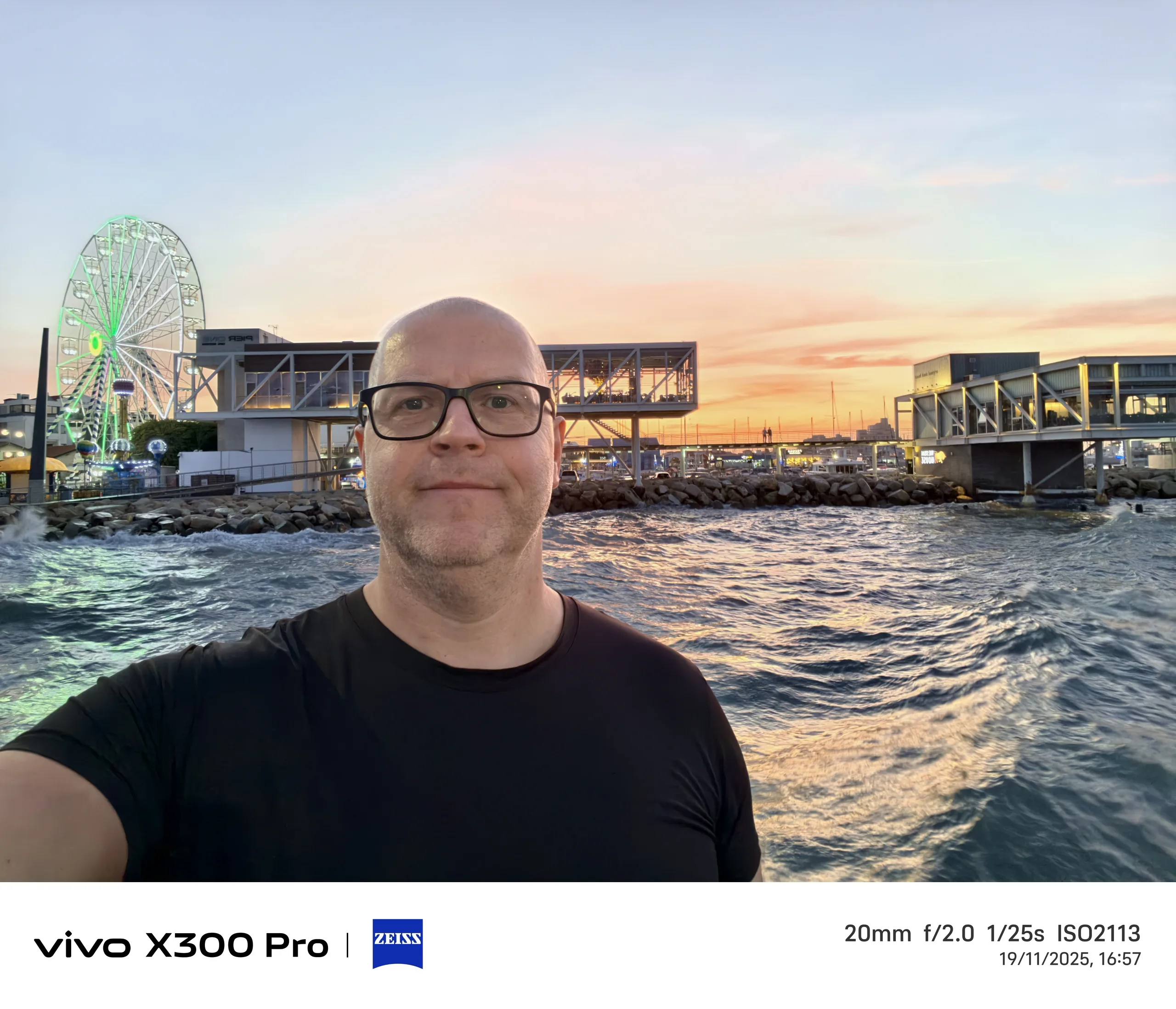 Nie jestem wielkim fanem selfie, ale w interesie nauki zrobiłem kilka selfie w różnych miejscach i w różnych warunkach oświetleniowych. Moim zdaniem Vivo X300 Pro znacznie poprawił się pod względem jakości selfie w porównaniu do Vivo X200 Ultra. W większości przypadków najnowszy flagowiec Vivo zapewnia najbardziej naturalnie wyglądający obraz z całego kwartetu, nie tylko dzięki zauważalnie szerszemu polu widzenia, ale także pod względem odcieni skóry - przynajmniej w moim przypadku. W ostatnim przykładzie, z zachodem słońca służącym jako źródło podświetlenia, Vivo X300 Pro również nieco walczy.