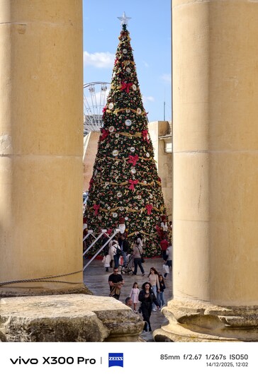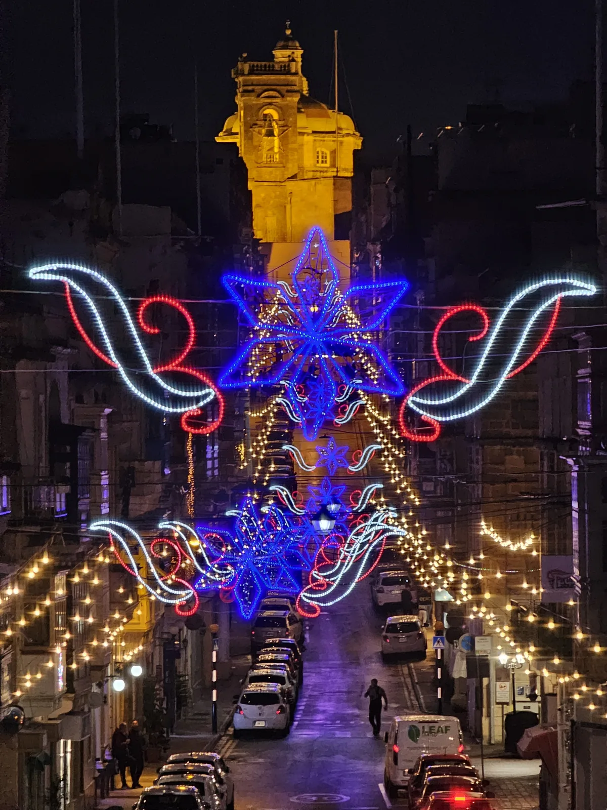 Malta przed świętami Bożego Narodzenia to wyjątkowe doświadczenie. Zamiast śniegu, wiele części miasta ma ulice z czasami bardzo wyszukanym oświetleniem świątecznym, co również stanowi dobry test trybu nocnego z ręki - na przykład na Triq Il-Vitorja w Senglea lub wzdłuż głównej arterii w Valletcie, która była pełna wieczorem. Są to dość trudne warunki dla testu z 10-krotnym zoomem. Przy użyciu statywu możliwe byłoby oczywiście osiągnięcie znacznie lepszych wyników.