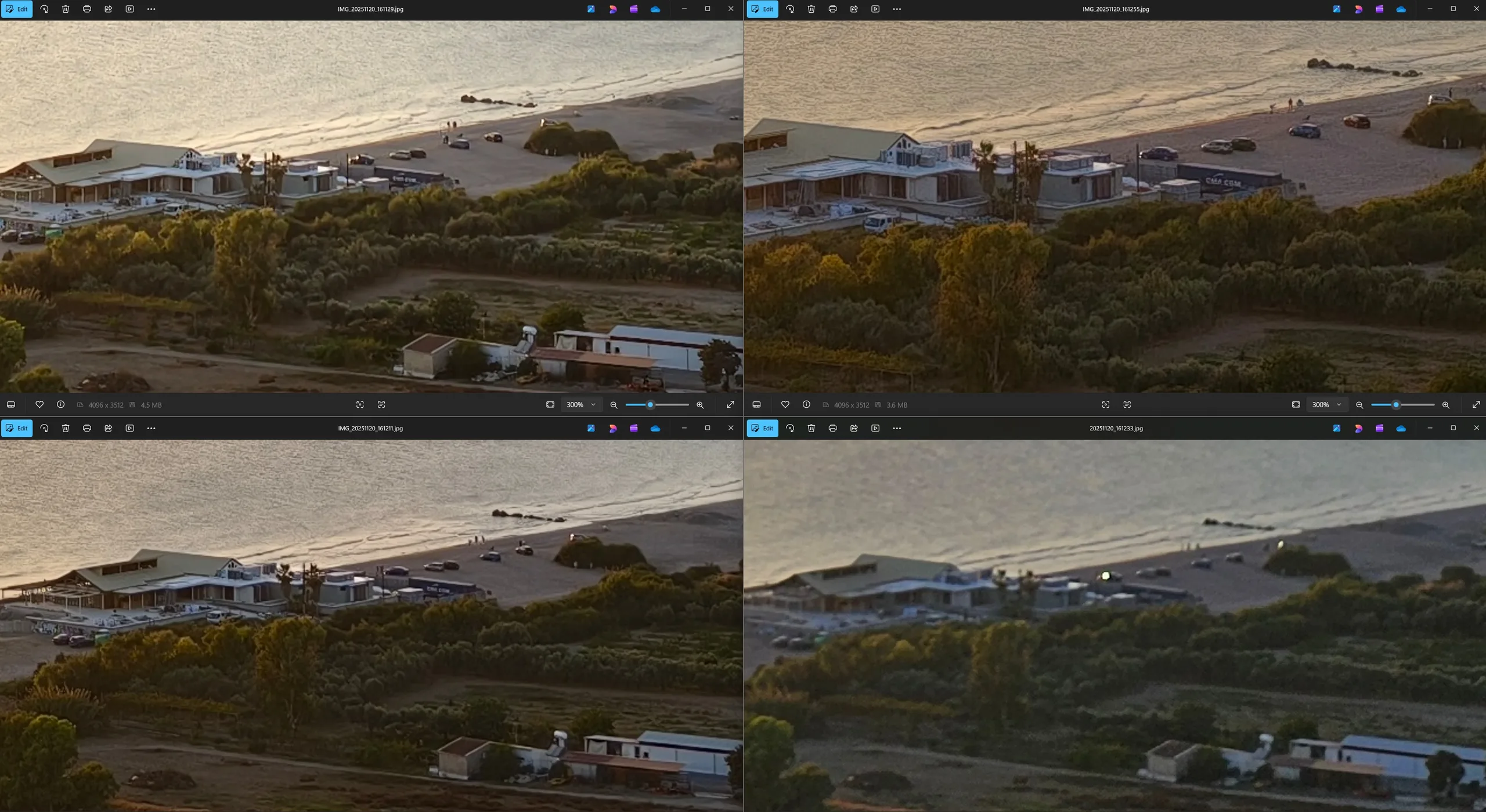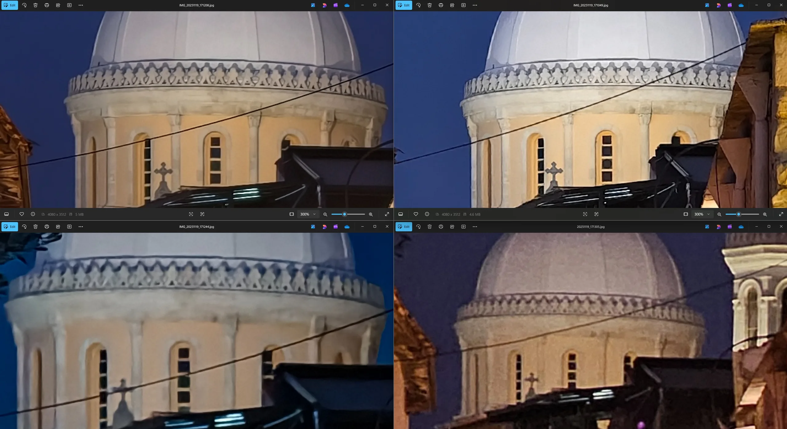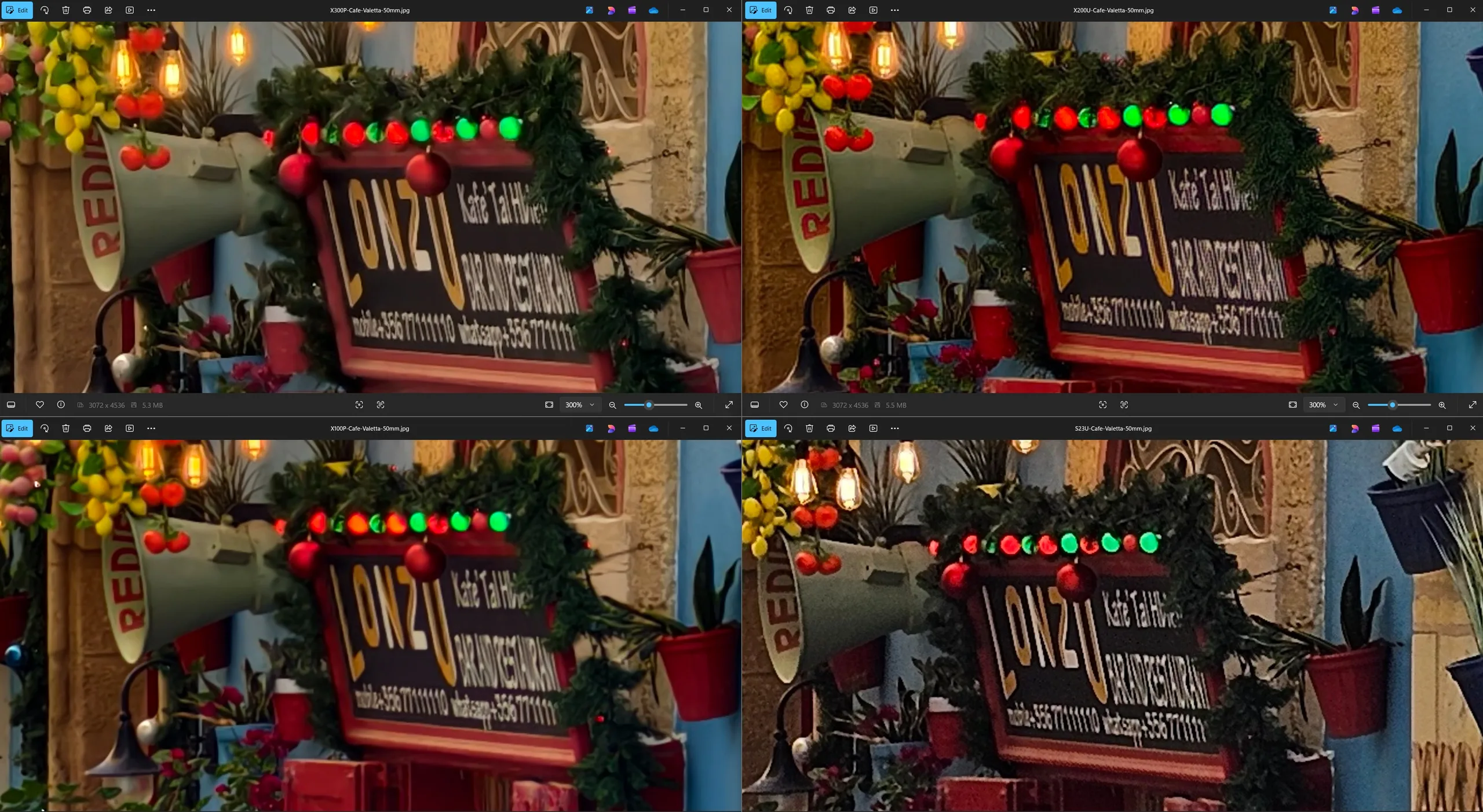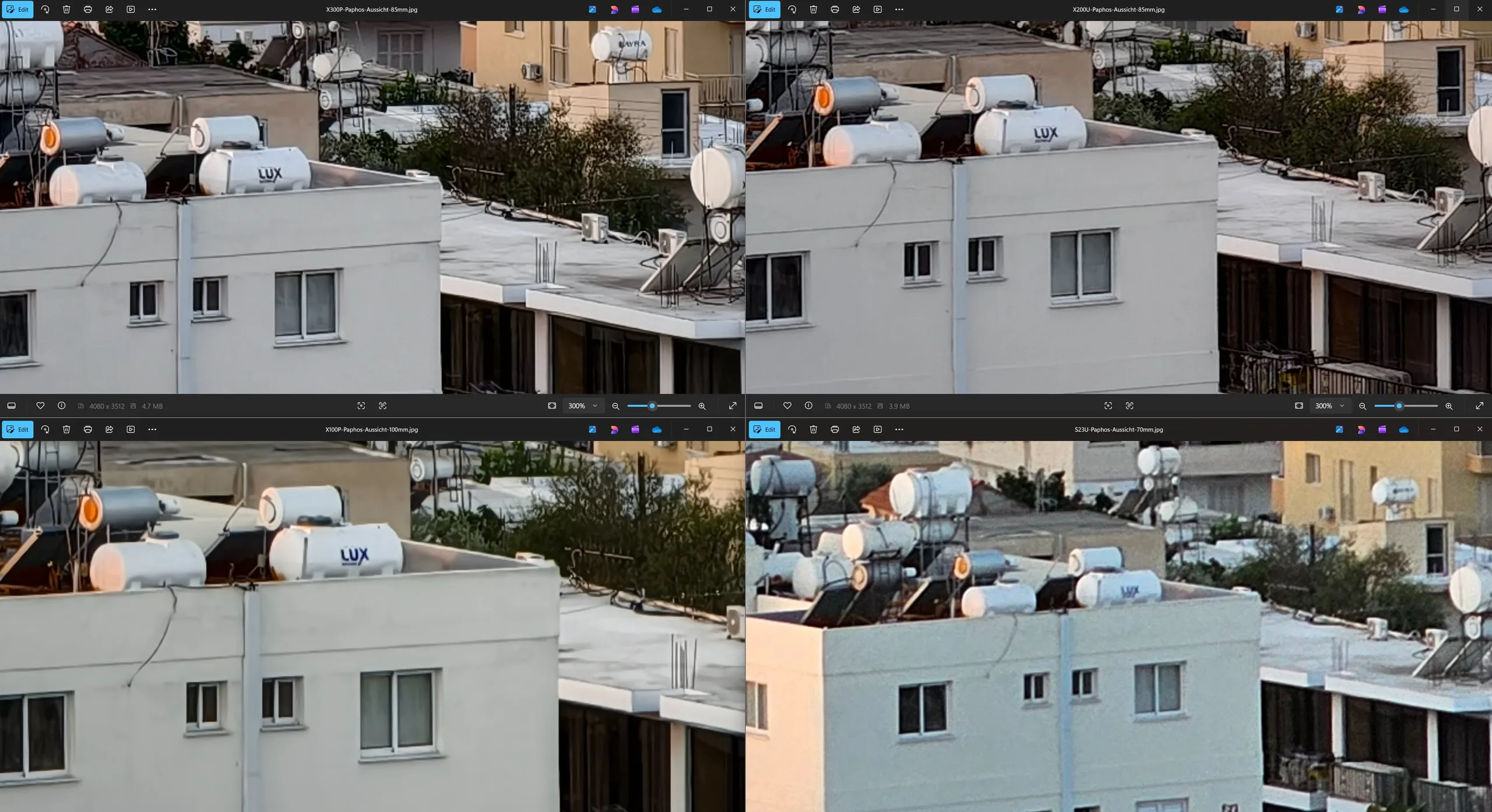 We wszystkich trzech porównaniach istnieje wyraźna różnica w ostrości i poziomie szczegółowości pomiędzy Samsungiem Galaxy S23 Ultra i Vivo X100 Pro z jednej strony, a Vivo X200 Ultra i Vivo X300 Pro z drugiej. Te dwa ostatnie są generalnie na bardzo podobnym poziomie i różnią się głównie drobniejszymi szczegółami, takimi jak nieco mocniejsze kolory lub nieco większy kontrast w nowszym modelu Pro.