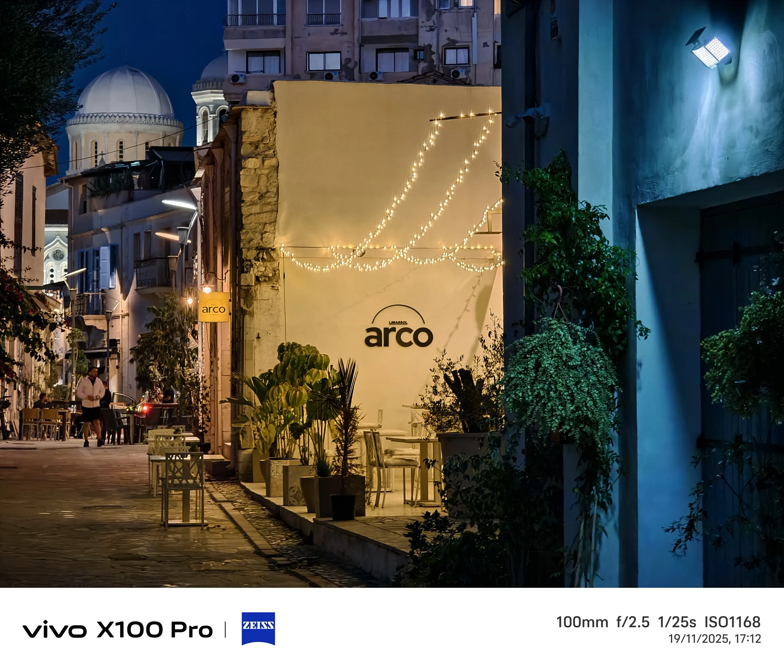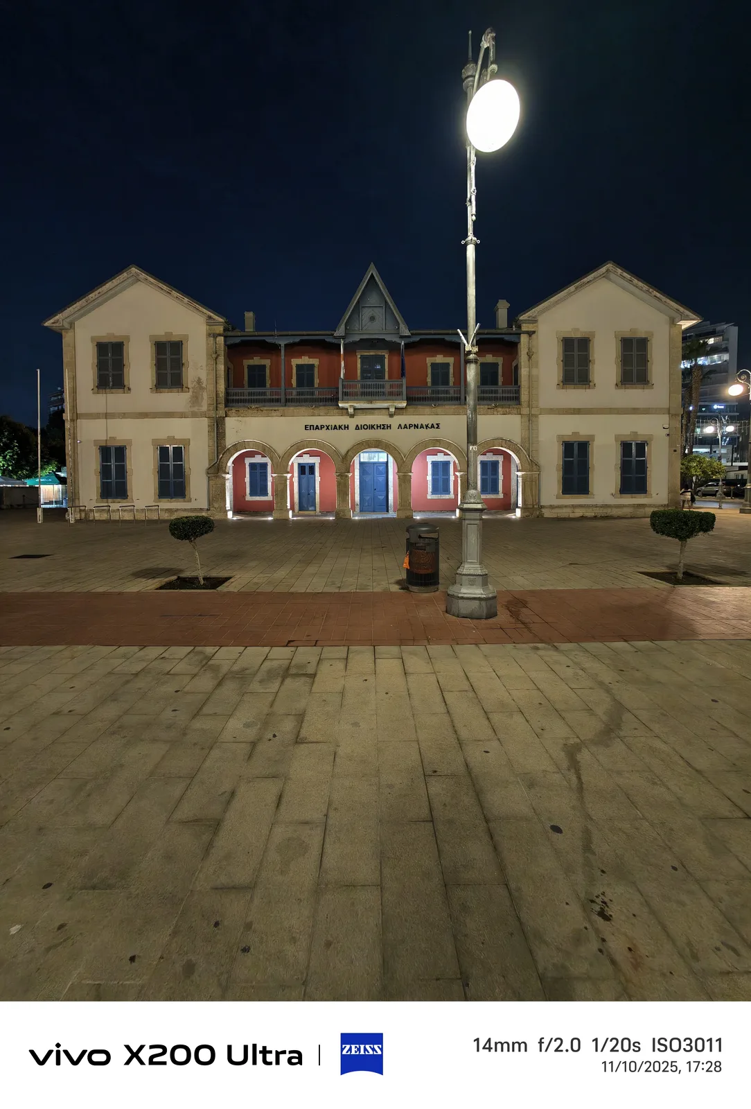 Bez telekonwertera lub 10-krotnego zoomu, cztery teleobiektywy wykonane w Limassol pokazują, do czego są zdolne w nocy, a każdy z nich wykorzystuje swoją natywną ogniskową. Vivo X300 Pro i Vivo X200 Ultra są wyraźnie w innej lidze na szczycie. Nawiasem mówiąc, źródło światła na pierwszym planie było w rzeczywistości niebieskie, a nie białe, jak Samsung błędnie interpretuje scenę. Ponadto zauważalny jest brak szczegółów w cieniach.