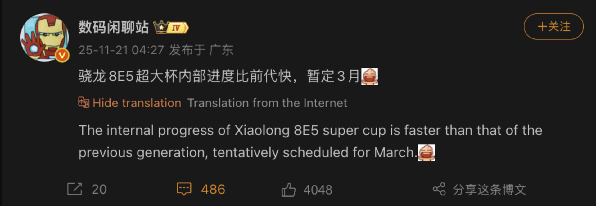 Pisząc na Weibo, przeciek twierdzi, że wewnętrzny rozwój kolejnego smartfona Vivo Ultra "postępuje szybciej niż jego poprzednik". Wyposażony w Snapdragon 8 Elite Gen 5 x300 Ultra jest najwyraźniej "zaplanowany na marzec", czyli zaledwie 11 miesięcy po debiucie X200 Ultra w Chinach.