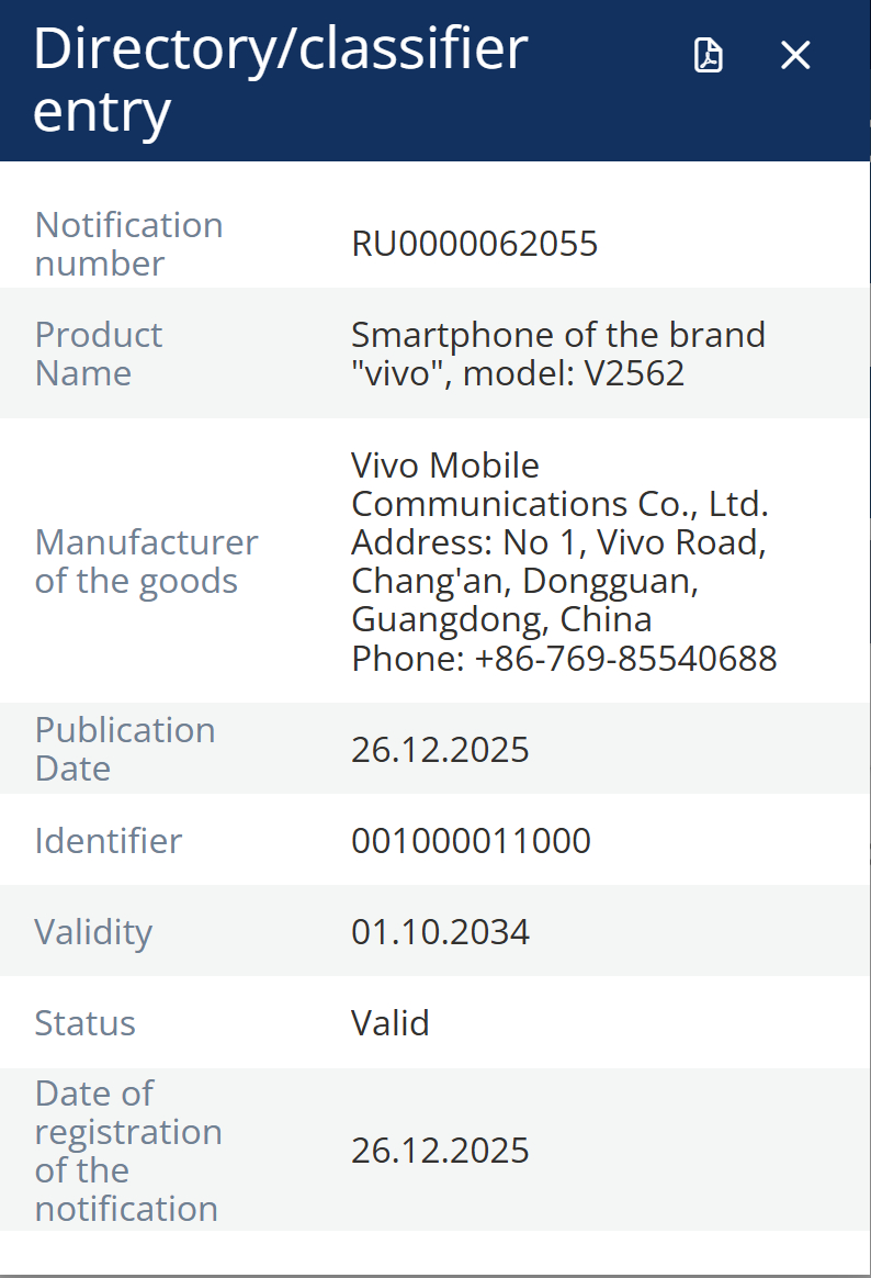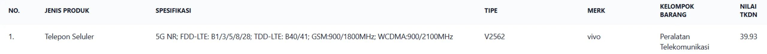 Tuż po świętach Bożego Narodzenia Vivo certyfikowało smartfon o numerze modelu V2562 w Euroazjatyckiej Komisji Gospodarczej (EWG). Często certyfikacja EEC przez dużego producenta jest pewnym znakiem, że wyda on urządzenie, zamiast pozwolić mu marnieć na podłodze w krojowni. Teraz to samo urządzenie pojawiło się w publicznej bazie danych TKDN w Indonezji.