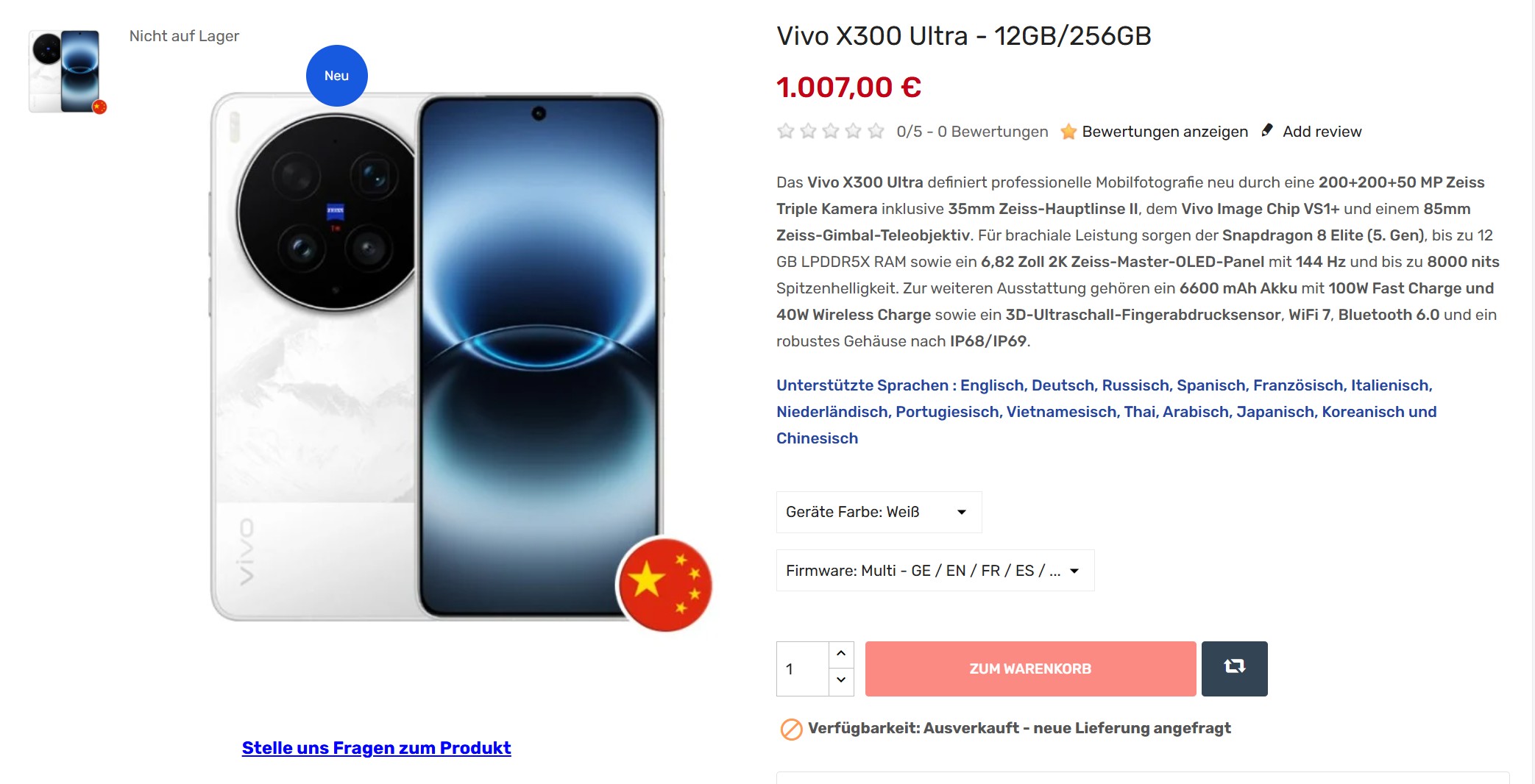 Chociaż Vivo Austria nie ogłosiło jeszcze oficjalnej ceny w euro, wyciek z oficjalnej strony sklepu pokazał już, że europejska wersja obecnego flagowego aparatu Zeiss nie będzie tania. Z pewnością można sporo zaoszczędzić dzięki pełnemu pakietowi, jeśli już planują Państwo korzystać ze wszystkich akcesoriów, ale wątpimy, aby prawdopodobna planowana europejska cena 2000 euro za wersję 16 GB / 1 TB uległa znacznej zmianie. Inne znane smartfony z wyższej półki z taką konfiguracją pamięci kosztują podobną kwotę, w tym iPhone 17 Pro Max z 1 TB pamięci masowej. To, czy smartfony z 1 TB pamięci masowej staną się jeszcze droższe w przyszłości, dopiero się okaże, ale obecne wąskie gardło podaży prawdopodobnie utrzyma się przez jakiś czas.