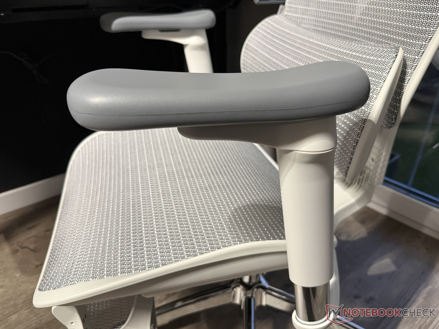 Fotel otoczony jest z lewej i prawej strony lekko wyściełanymi podłokietnikami 4D. Można je nie tylko regulować na wysokość do 9 cm, ale także przesuwać do przodu o kilka centymetrów. Fakt, że można je odchylić do około 45 stopni, jest szczególnie praktyczny podczas relaksującego siedzenia. Pozwala to wygodnie oprzeć na nich ramiona, podczas gdy ręce spoczywają na brzuchu.