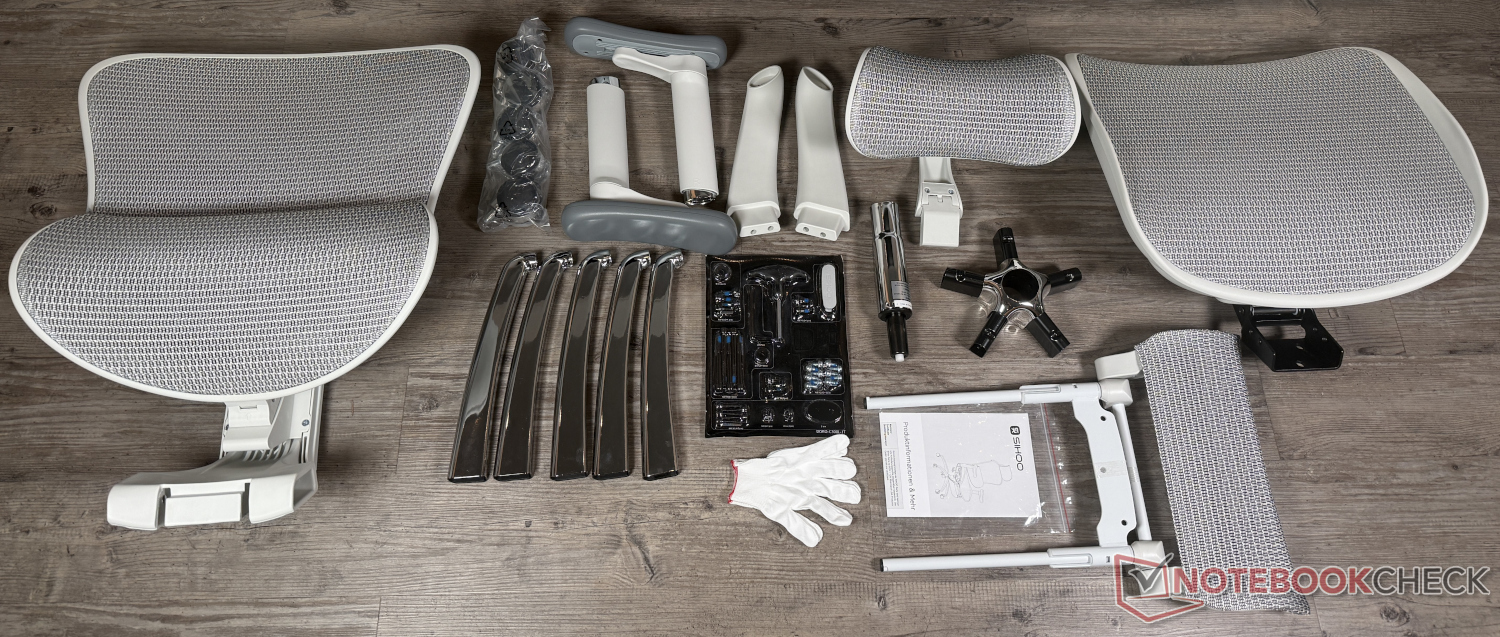 Ergonomiczne krzesło biurowe zostało dostarczone w dwóch dość dużych i ciężkich pudełkach. Po rozpakowaniu zawierają one około 20 części, a także całą gamę śrub i innych drobnych elementów. Zaletą jest to, że wszystkie narzędzia znajdują się w zakresie dostawy, więc nie ma potrzeby grzebania w skrzynce z narzędziami. Kolejnym pozytywnym aspektem jest to, że producent nie używa dużych bloków styropianu jako materiału opakowaniowego, a zamiast tego używa tektury. W końcu 25-litrowy worek na śmieci był nadal pełen worków i innych plastikowych odpadów.