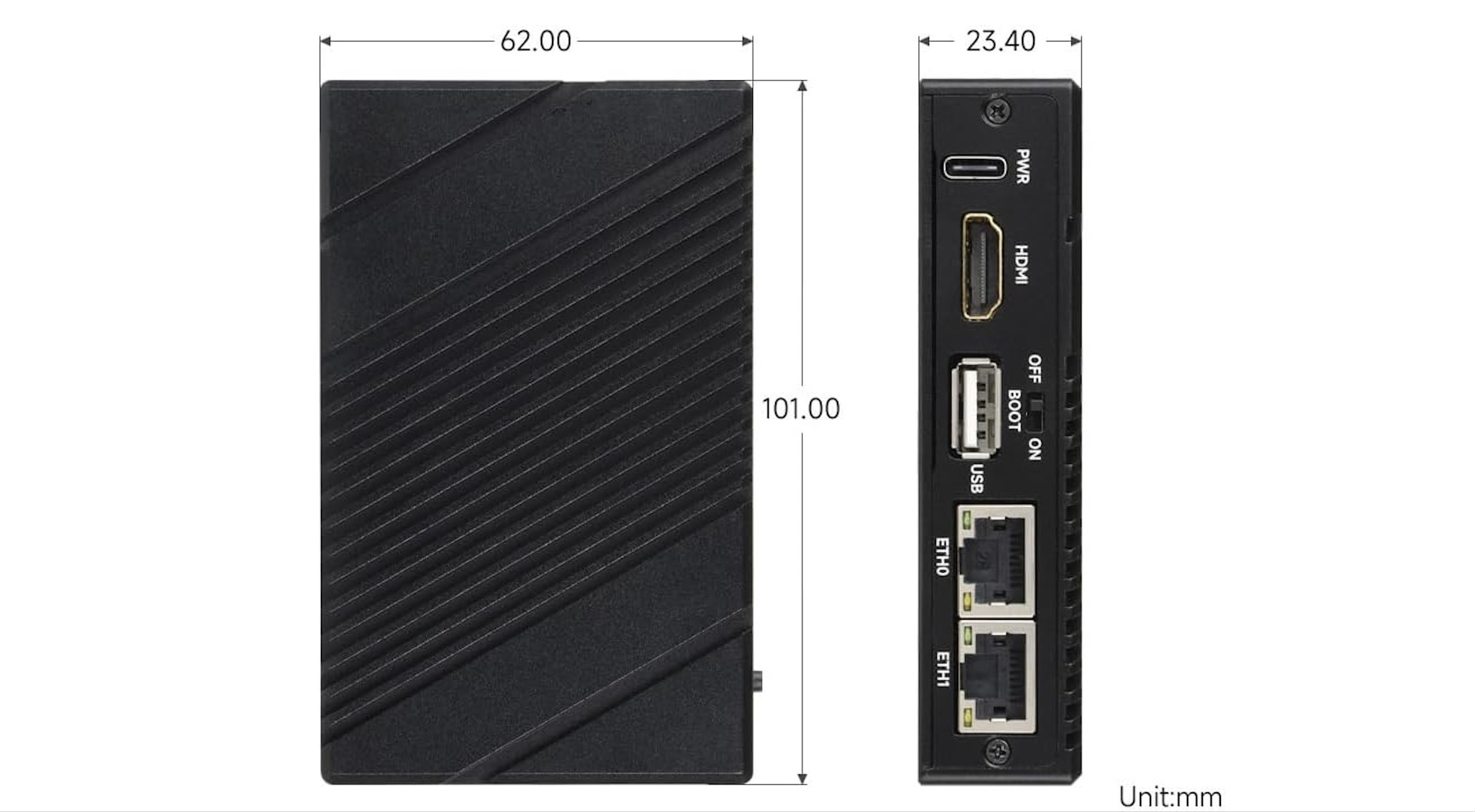 Przy wymiarach zaledwie 101 x 62 x 23,4 mm lub około 4 x 2,4 x 0,9 cala, Waveshare CM5 BOX jest imponująco kompaktowa, co nie jest zaskoczeniem, biorąc pod uwagę, jak kompaktowy jest sam CM5. Jak każda płyta nośna I/O, zapewnia to Raspberry Pi CM5 nadmiar opcji wejściowych i wyjściowych. Szczegółową listę znajdą Państwo poniżej: