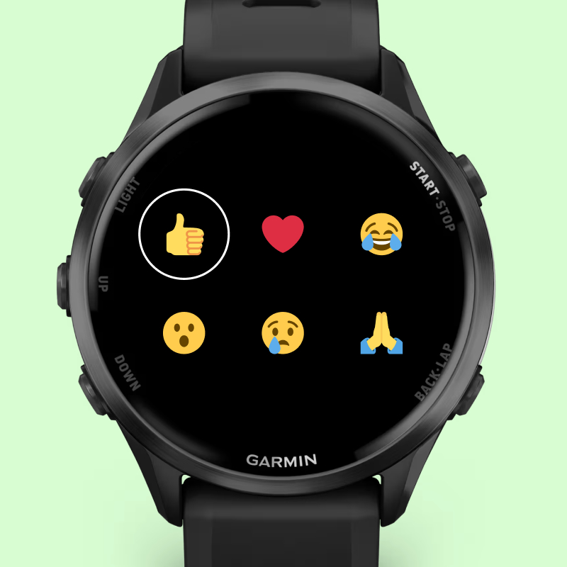 Odkładając to na bok, aplikacja WhatsApp może wyświetlać do 10 ostatnich wiadomości bez konieczności podnoszenia sparowanego smartfona. Można nie tylko wysyłać emoji i reakcje na wiadomości, ale także odpowiadać na wiadomości za pomocą wbudowanej klawiatury Garmina. Garmin nie wspomina jednak o obsłudze dyktowania głosowego.
