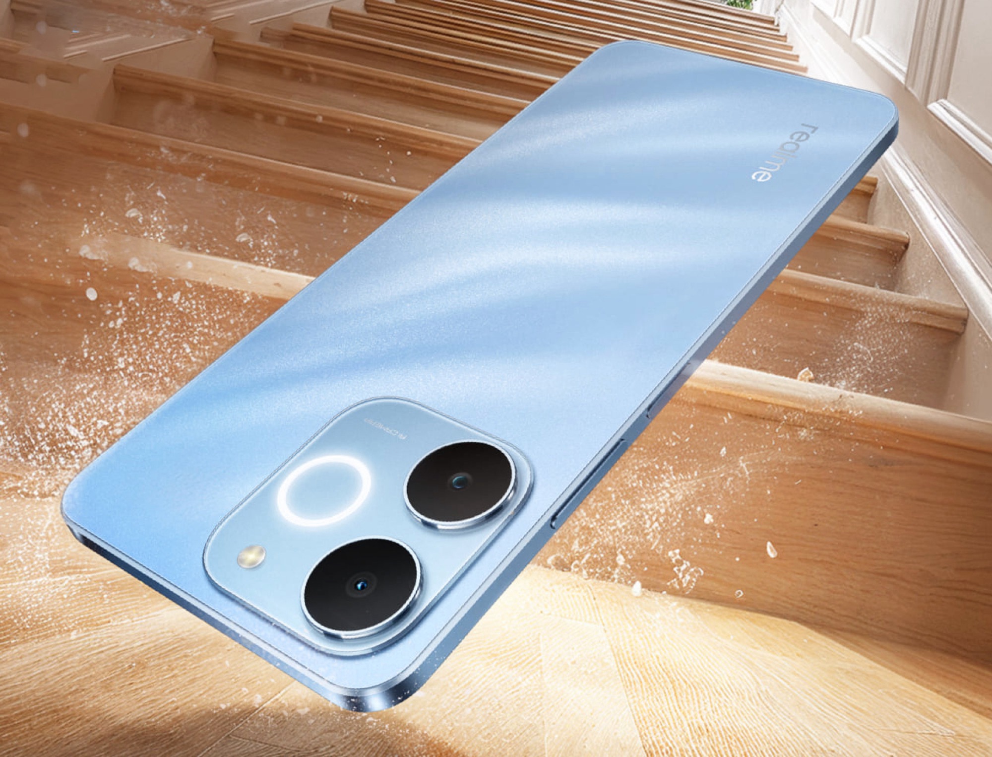 Jedyną charakterystyczną cechą projektu jest "Pulse Light", dioda LED w kształcie pierścienia w module kamery, która wskazuje przychodzące powiadomienia. Obudowa o grubości 7,94 milimetra i wadze 201 gramów posiada certyfikat IP54, co oznacza, że jest odporna tylko na zachlapania. Chociaż smartfon średniej klasy jest cieńszy niż Apple iPhone 17, Realme udało się zmieścić znacznie większą baterię o pojemności 6300 mAh