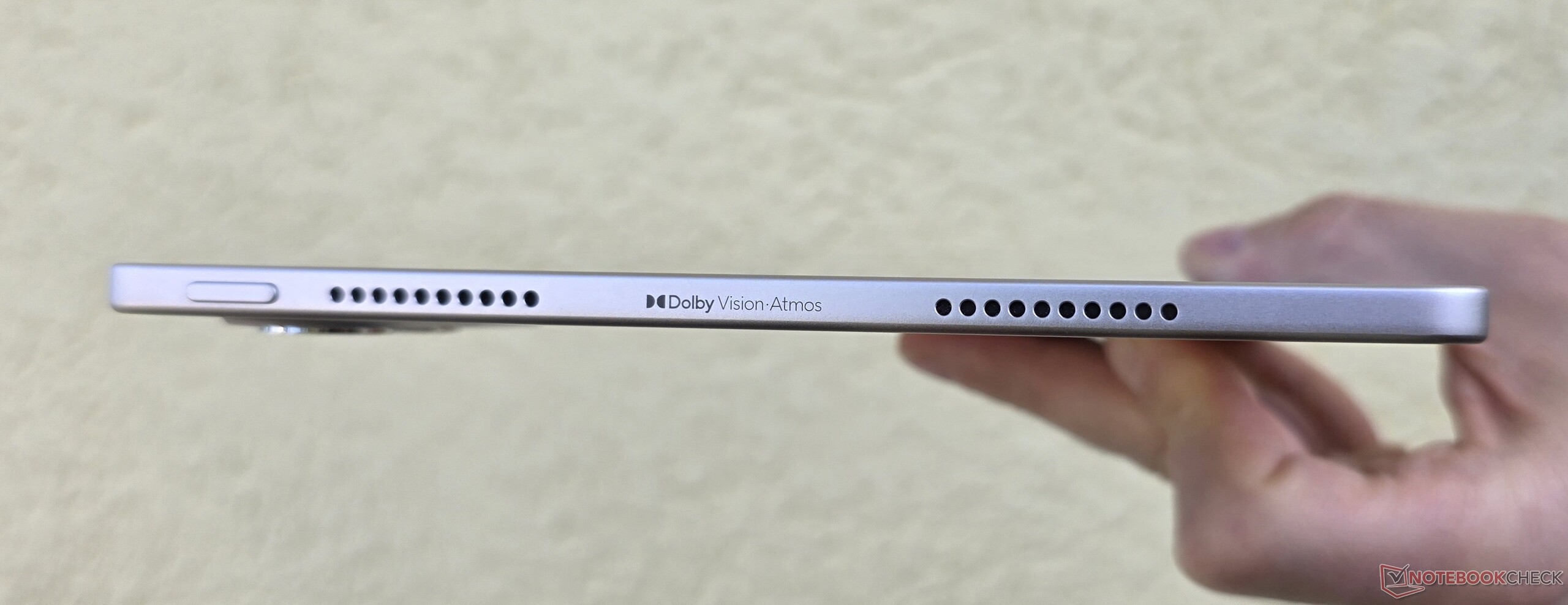 Tablet Yoga Tab jest dobrze wykonany i sprawia wrażenie wysokiej jakości. Aluminiowa obudowa odpowiada za solidną, ale stosunkowo lekką konstrukcję, która waży 458 gramów. Przy 6,2 milimetra tablet Lenovo wydaje się jednak nieco grubszy niż Galaxy Tab S11. Co więcej, tablet ze średniej półki ma tylko certyfikat IP53, który chroni przed kurzem i zachlapaniami.