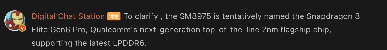 Prominentny tipster Digital Chat Station ujawnił teraz, że OnePlus 16 będzie wyposażony w chipset o nazwie kodowej SM8975, podobno należący do Snapdragon 8 Elite Gen 6 Pro. Oczekuje się, że będzie to chipset oparty na 2 nm, który może osiągnąć prędkość zegara 5 GHz. Warto zauważyć, że podobno obsługuje LPDDR6 RAM, w porównaniu do LPDDR5X RAM w 8 Elite Gen 5.