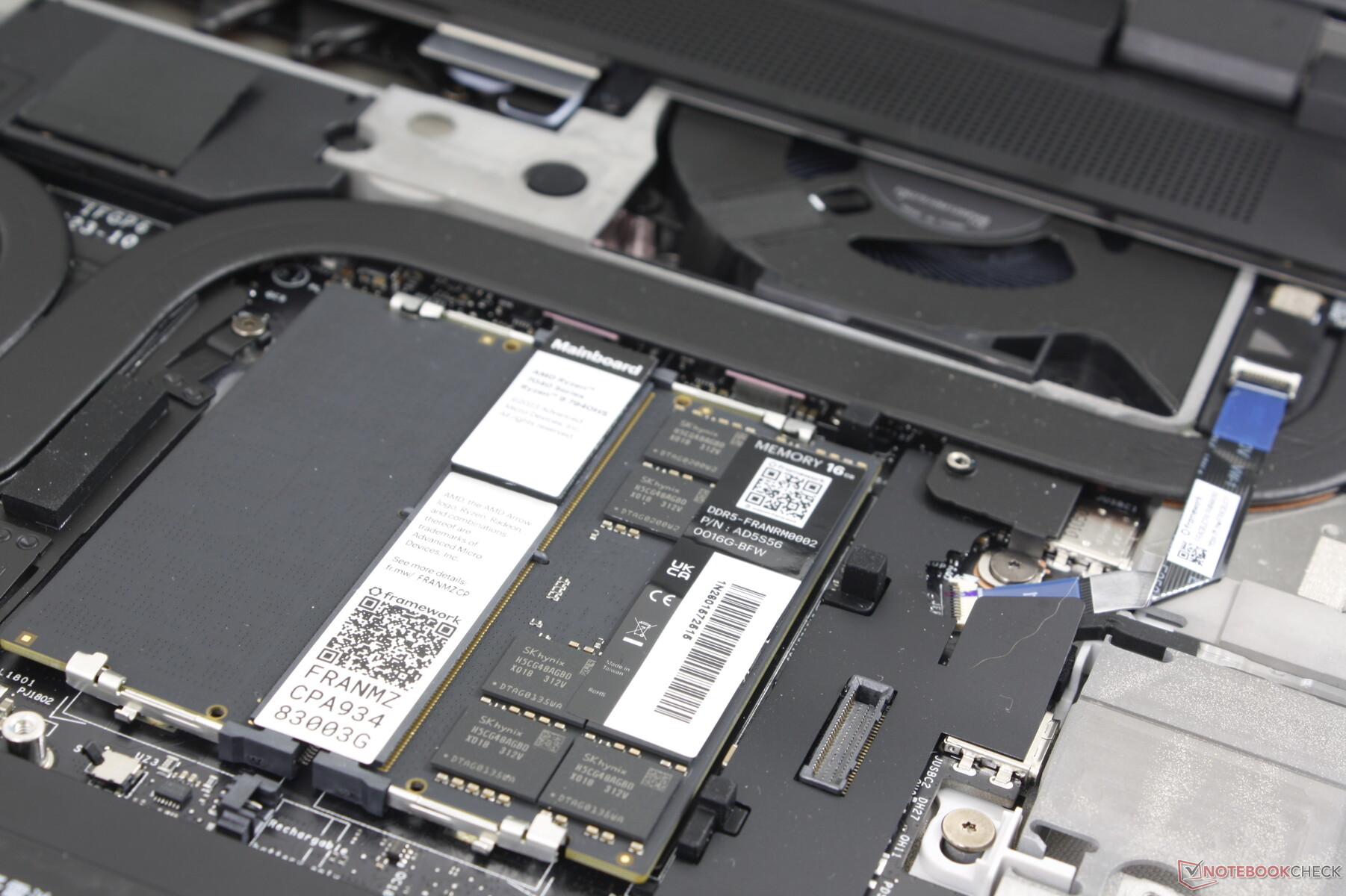 Dostęp do płyty głównej jest bardziej skomplikowany niż zwykle. Podczas gdy większość innych laptopów wymaga jedynie zdjęcia dolnego panelu, Laptop 16 wymaga zdjęcia klawiatury, clickpada, kabla taśmowego, 15 śrub Torx i metalowej płyty środkowej, aby odsłonić wnętrze. Nie jest to w żaden sposób trudne, ale proces ten jest nieco dłuższy w porównaniu do czegoś takiego jak tradycyjny ThinkPad lub EliteBook.