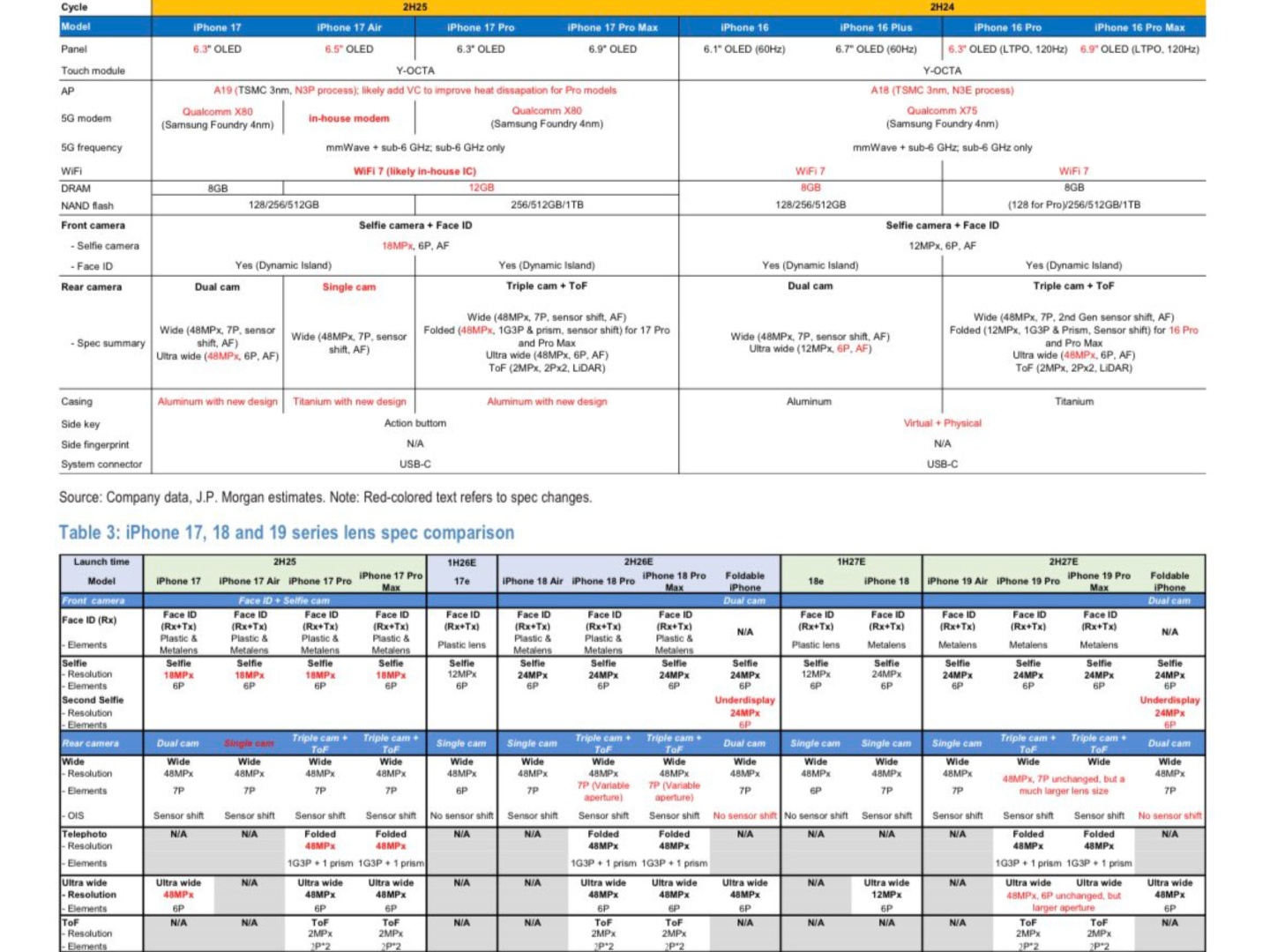 Analityk branżowy Max Weinbach opublikował porównanie specyfikacji JP Morgan dla nadchodzących modeli iPhone'a i wymienia iPhone'a Air 2 i iPhone'a Air 3. Weinbach wskazuje, że JP Morgan i inne tego typu banki są "bardzo dobre" w uzyskiwaniu tego rodzaju informacji z łańcucha dostaw. Sugeruje to, że łańcuch dostaw Apple przygotowuje się na iPhone'a Air 2 i Air 3, lub jakkolwiek się one nazywają, pomimo słabej sprzedaży iPhone'a Air.