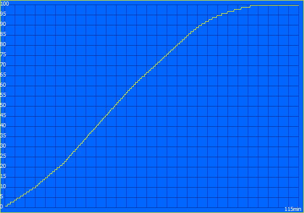 Zużycie energii osiąga maksymalny poziom 65,2 W, czyli nieco więcej niż może dostarczyć ładowarka 65 W. Ponieważ pobór mocy szybko spada, urządzeniu nie grozi utrata naładowania podczas użytkowania.