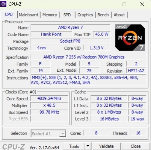 Ryzen Ryzen 7 255 jest wciąż rzadko spotykany w laptopach. Zbudowany w procesie technologicznym 4 nm układ oferuje osiem rdzeni i może obsługiwać do 16 wątków. W przeciwieństwie do Core i7-14700HX w Tulpar T6 V3.5, wydajność pozostaje stała nawet przy długotrwałym obciążeniu - choć nadal nie dorównuje procesorom takim jak Core Ultra 7 255HX, Core Ultra 9 275HX, Ryzen 9 8940HX i Ryzen AI 9 HX 370.