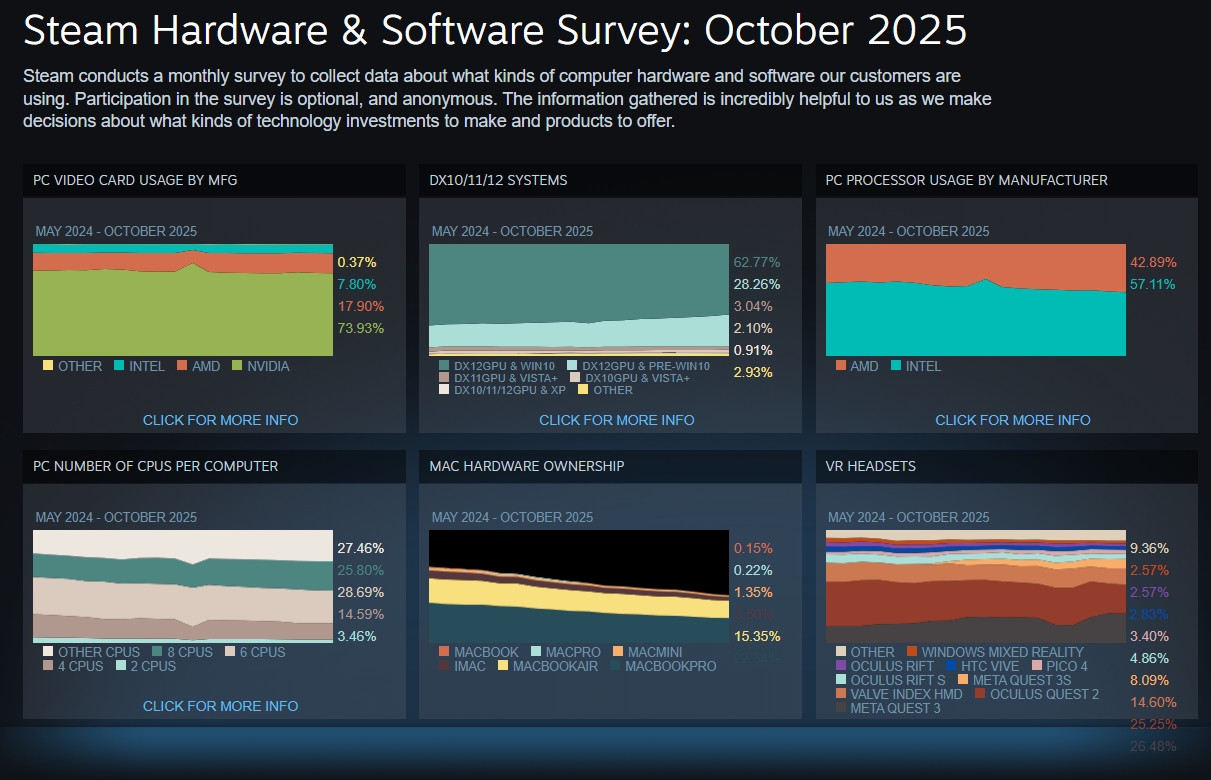 Chociaż trzy procent może wydawać się skromne, sygnalizuje to stały wzrost gier opartych na Linuksie, na czele z Steam Deck i rosnącą liczbą komputerów przenośnych i mini PC, które są dostarczane z systemami operacyjnymi open source, takimi jak Bazzite i HoloISO.