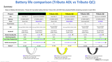 Jak pokazuje poniższy obrazek, ten cel w zakresie żywotności baterii stanowi ogromny wzrost w porównaniu z XPS 13 opartym na Intel Alder Lake. Mając to na uwadze, XPS 13 9345 osiąga to tylko poprzez ograniczenie Snapdragona X Elite (X1E-80-100) do 17,5 W TDP w trybie oszczędzania energii i 25,5 W w trybie wydajności, pomimo tego, że Qualcomm oferuje producentom OEM szczytowe rozpraszanie mocy 80 W. W dokumencie dodano, że Dell ma nadzieję wprowadzić na rynek XPS 13 9345 za około 1199 USD, choć cena ta mogła ulec zmianie od czasu sfinalizowania dokumentu pod koniec 2023 roku.