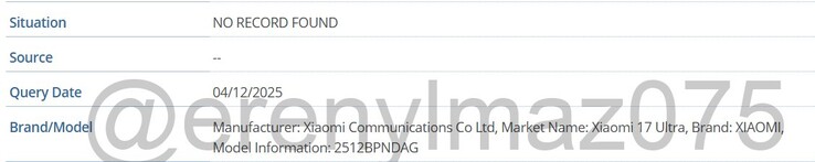Plotka głosi, że nowy moduł peryskopowy zawiera nie tylko prosty teleobiektyw, ale prawdziwy aparat z zoomem optycznym i zmienną ogniskową, choć nie zostało to jeszcze potwierdzone. Dość pewne jest to, że możemy teraz spodziewać się Xiaomi 17 Ultra w Europie. Podczas gdy większość obserwatorów już się tego spodziewała, globalny model o numerze 2512BPNDAG został po raz pierwszy odkryty w bazie danych IMEI, o czym świadczy poniższy zrzut ekranu. W związku z tym spodziewamy się, że Xiaomi 17 Ultra zostanie wprowadzony na rynek w Chinach w grudniu, a na całym świecie w marcu 2026 roku