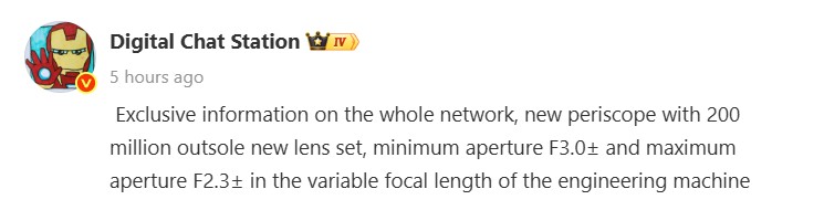 Przeciek, o którym mowa, ujawnił teraz kolejny szczegół dotyczący tego potencjalnego rozwiązania z zoomem optycznym 200 MP z optyką Leica: wartości przysłony na obu końcach zakresu ogniskowych. Według przecieku można spodziewać się przysłony f/2.3 przy ekwiwalencie ogniskowej 70 mm i f/3.0 przy 100 mm, co jest typową cechą tańszych obiektywów zmiennoogniskowych, które przepuszczają mniej światła wraz ze wzrostem ogniskowej. Tekst sugeruje również, że może to być wewnętrzny obiektyw peryskopowy wbudowany w Xiaomi 17 Ultra, podobny do tego w Sony Xperia 1 VII. Informacje te odnoszą się do aktualnego urządzenia testowego, więc zmiany są nadal możliwe przed premierą