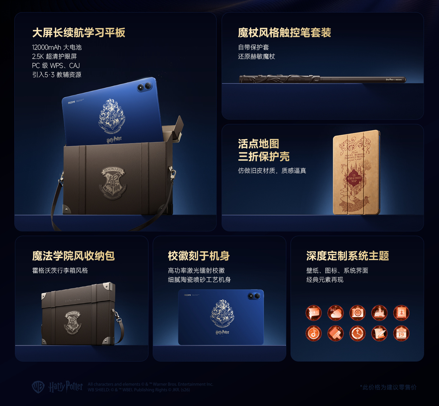 Podobnie, wszystkie warianty Redmi Pad 2 Pro wykorzystują wyświetlacz 2.5K i 120 Hz. Jednak Harry Potter Edition dodaje kilka ekskluzywnych akcesoriów, takich jak futerał, pokrowiec folio, a nawet rysik dostosowany do różdżki. Co więcej, Harry Potter Edition posiada ekskluzywne niebieskie wykończenie z logo Hogwartu z tyłu.