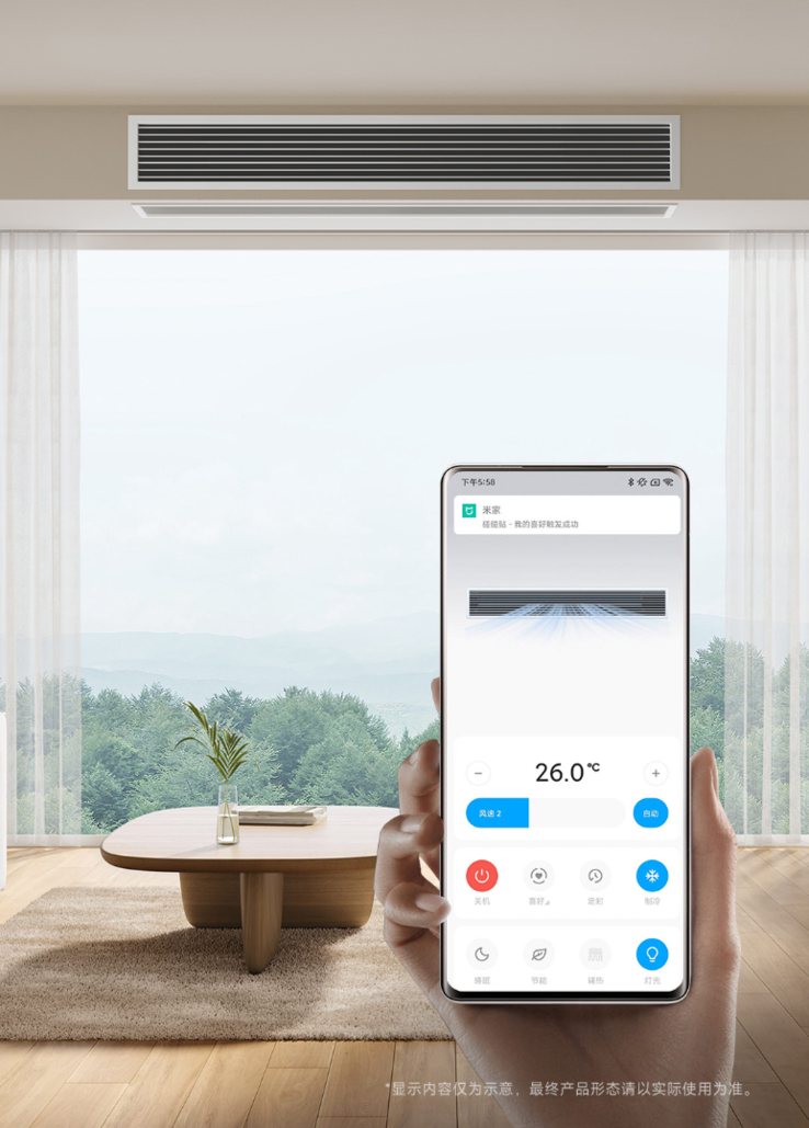 Xiaomi twierdzi, że jego centralny kanał klimatyzacyjny działa szybko, chłodząc w 40 sekund i zapewniając ciepło w 80 sekund. Można wybierać spośród siedmiu prędkości, a tryb uśpienia zapewnia cichą pracę urządzenia. Ponadto tryb samooczyszczania wykorzystuje powietrze o wysokiej temperaturze 56°C (~133 °F), aby usunąć do 99% zarazków. Urządzenie jest inteligentne, sterowane za pomocą poleceń głosowych Xiao AI lub za pośrednictwem aplikacji Mijia, w której można również uruchamiać aktualizacje OTA. Alternatywnie, ustawienia klimatyzacji można regulować za pomocą przewodowego panelu sterowania. Jednostka zewnętrzna działa w temperaturach od -35 do 60 ° C (~ -31 do 140 ° F), a urządzenie zostało ocenione jako pierwsza klasa efektywności energetycznej w Chinach.