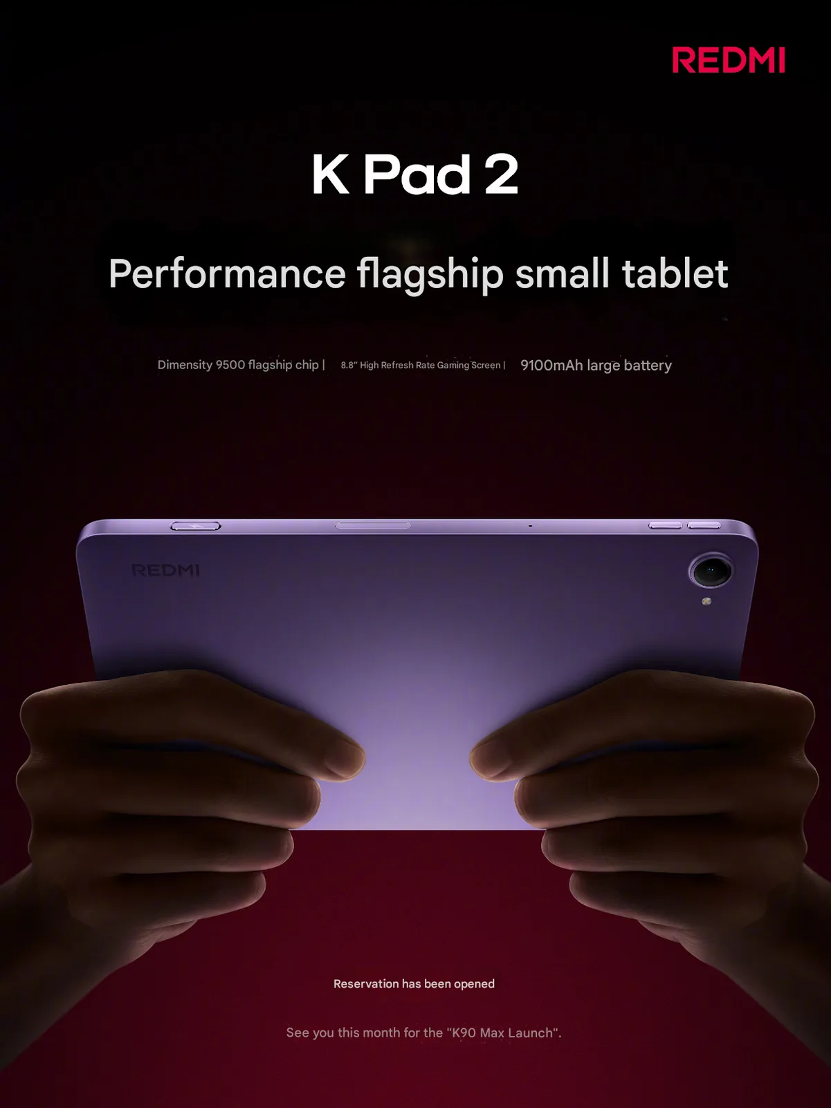 Firma potwierdziła również, że ten tablet Redmi ma baterię o pojemności 9 100 mAh, co jest dość dużą pojemnością jak na rozmiar urządzenia. Oczekuje się, że będzie on obsługiwał szybkie ładowanie 67 W, a zdjęcia potwierdzają, że urządzenie będzie miało metalową konstrukcję unibody. Redmi K Pad 2 zostanie wydany wraz z k90 Maxa wydarzenie premierowe zaplanowano na koniec kwietnia 2026 roku w Chinach. Oczekuje się, że Xiaomi wkrótce udostępni więcej szczegółów.