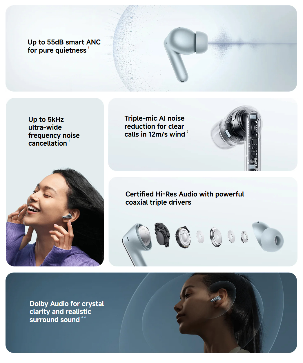 Redmi Buds 8 Pro będą dostępne na całym świecie w kolorach Cloud White, Glacier Blue i Obsidian Black, wszystkie z bateriami 54 mAh i 480 mAh wewnątrz pasujących etui ładujących. Zapewniając do 8 godzin pracy na jednym ładowaniu, Xiaomi instaluje również modem obsługujący Bluetooth 5.4 i trzy mikrofony na słuchawkę, które pomagają zapewnić do 55 dB aktywnej redukcji szumów (ANC).