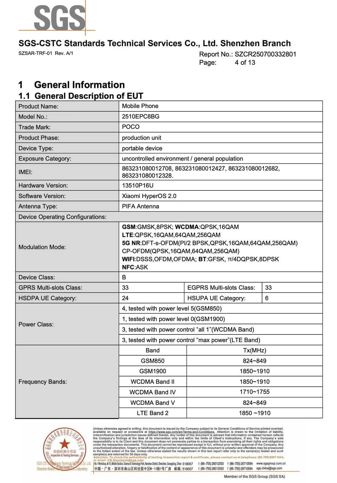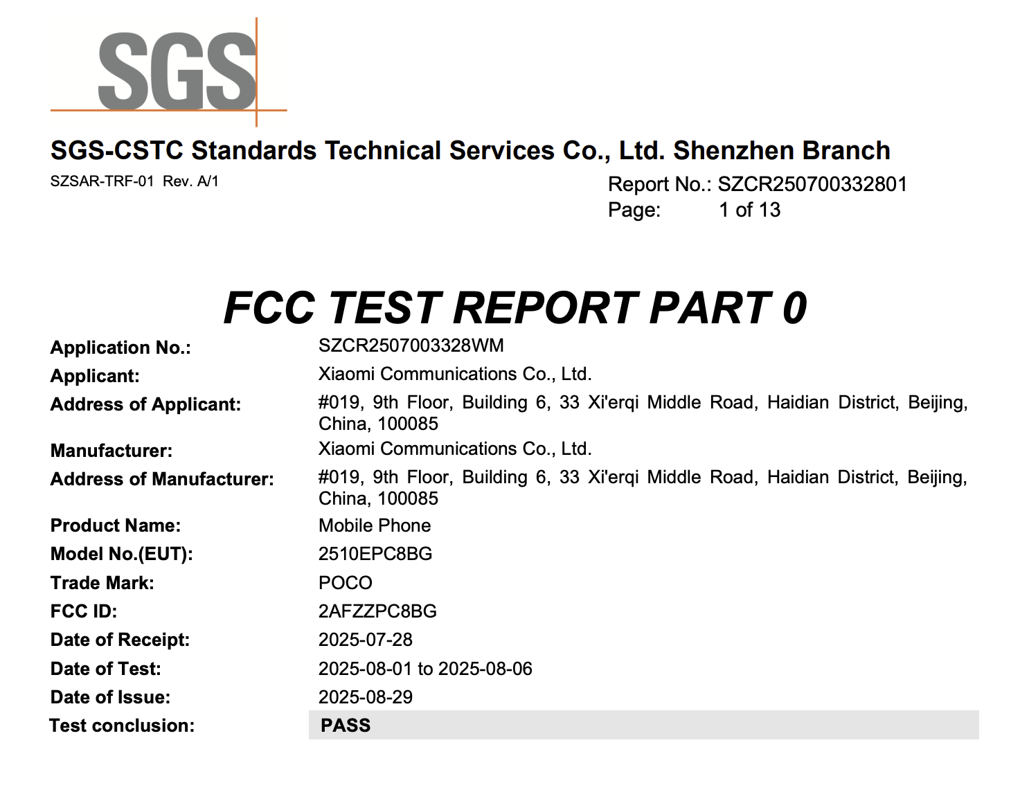 Podsumowując, wczesne szczegóły dotyczące Poco M8 Pro pojawiły się w sierpniu. W tamtym czasie pokazany numer modelu wskazywał, że Poco M8 Pro był rebrandowany Redmi Note 15 Pro Plus. Teraz Federalna Komisja Łączności (FCC) certyfikowała to samo urządzenie do sprzedaży w USA. Jak pokazują poniższe zdjęcia, FCC odnosi się do "2510EPC8BG" jako jednostki produkcyjnej, co sugeruje, że pełne wydanie jest bliskie.