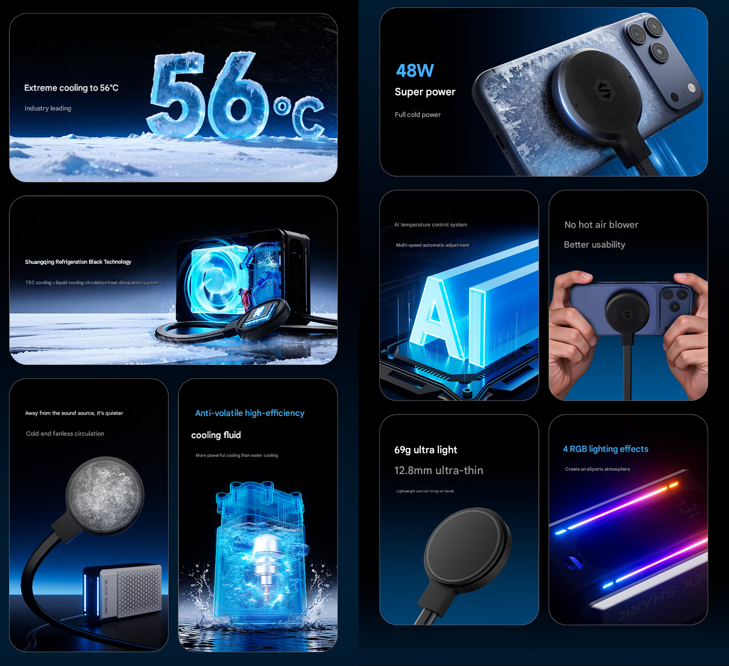 Mówiąc o tym, cooler ten, zwany Black Shark 6 Ultra, łączy się z telefonami, tabletami i handheldami do gier za pomocą magnetycznego mocowania. To mocowanie ma chip chłodzący TEC zapewniający stabilną wydajność chłodzenia.