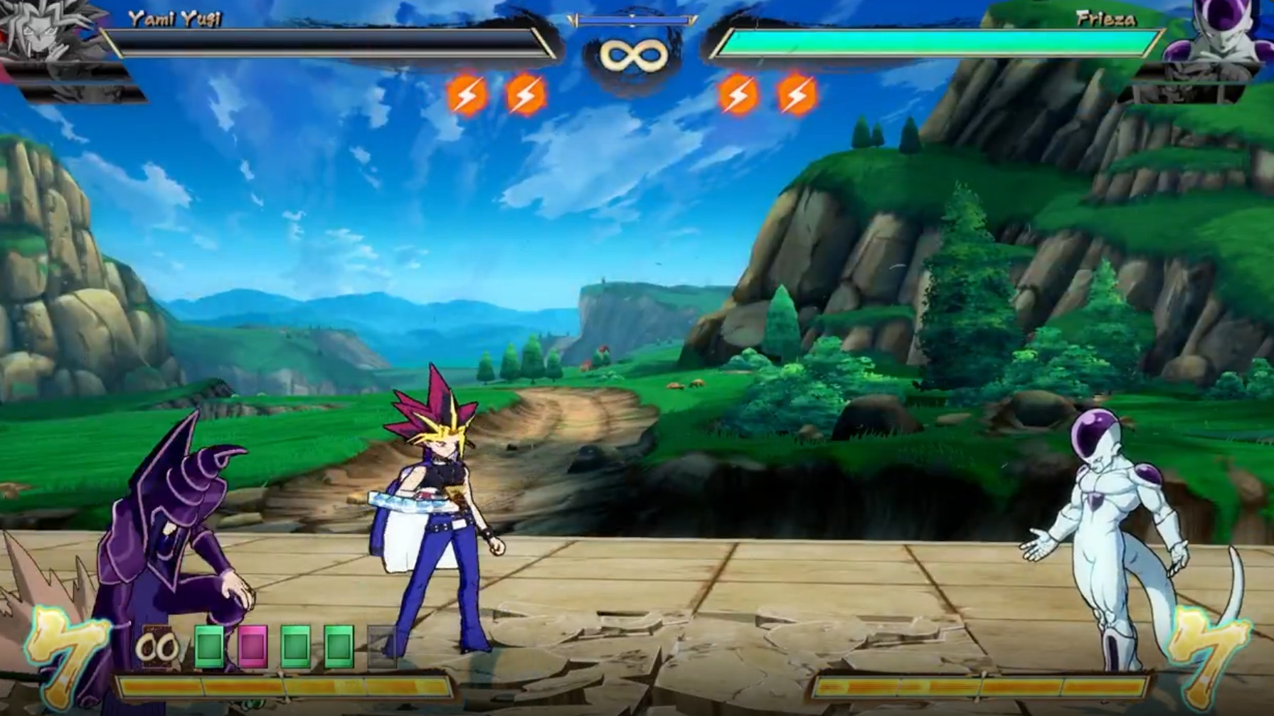 Yami Yugi został przeniesiony do Dragon Ball FighterZ, wraz z listą przywoływanych potworów i japońskim lektorem z napisami. Jego zawsze niezawodny towarzysz w anime, Dark Magician, służy jako zawsze obecna "postać marionetkowa", która w grach walki odnosi się do sytuacji, gdy kontrolujesz dwie postacie jednocześnie (pomyśl o Ice Climbers w Smash Bros. lub Zato w Guilty Gear), ponieważ oczywiście sam Yugi nie może wymieniać ciosów z takimi postaciami jak Cell czy Frieza. Oczywiście można przywołać inne potwory, aby przyłączyć się do walki, ale Mroczny Mag będzie zdecydowanie gwiazdą pokazu przez większość walki.