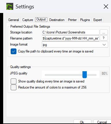 Po świeżej instalacji klikam prawym przyciskiem myszy ikonę Greenshot na pasku zadań (dwukrotne kliknięcie otwiera folder przechowywania) i otwieram panel Preferencje. Następnie zmieniam następujące ustawienia: