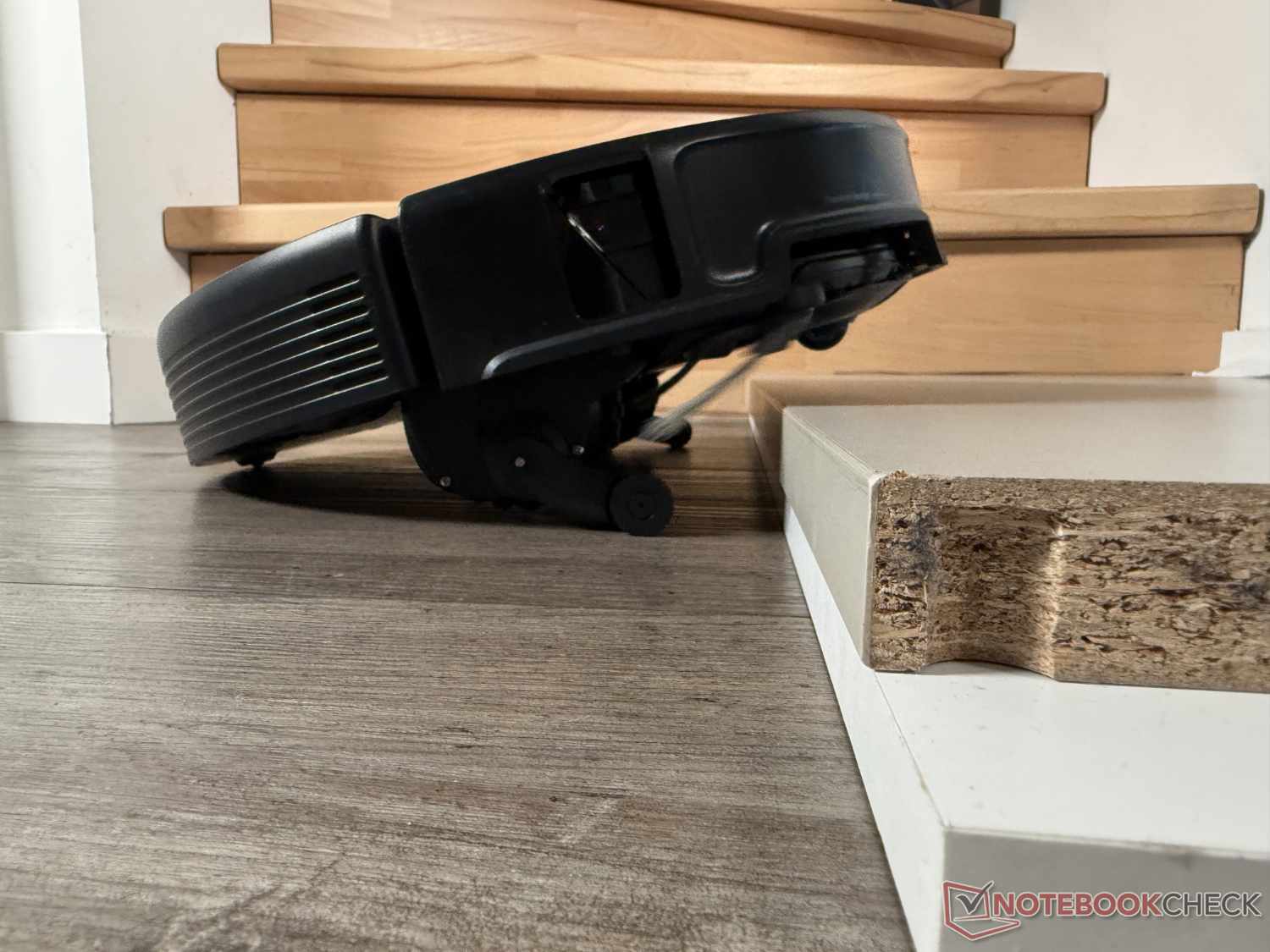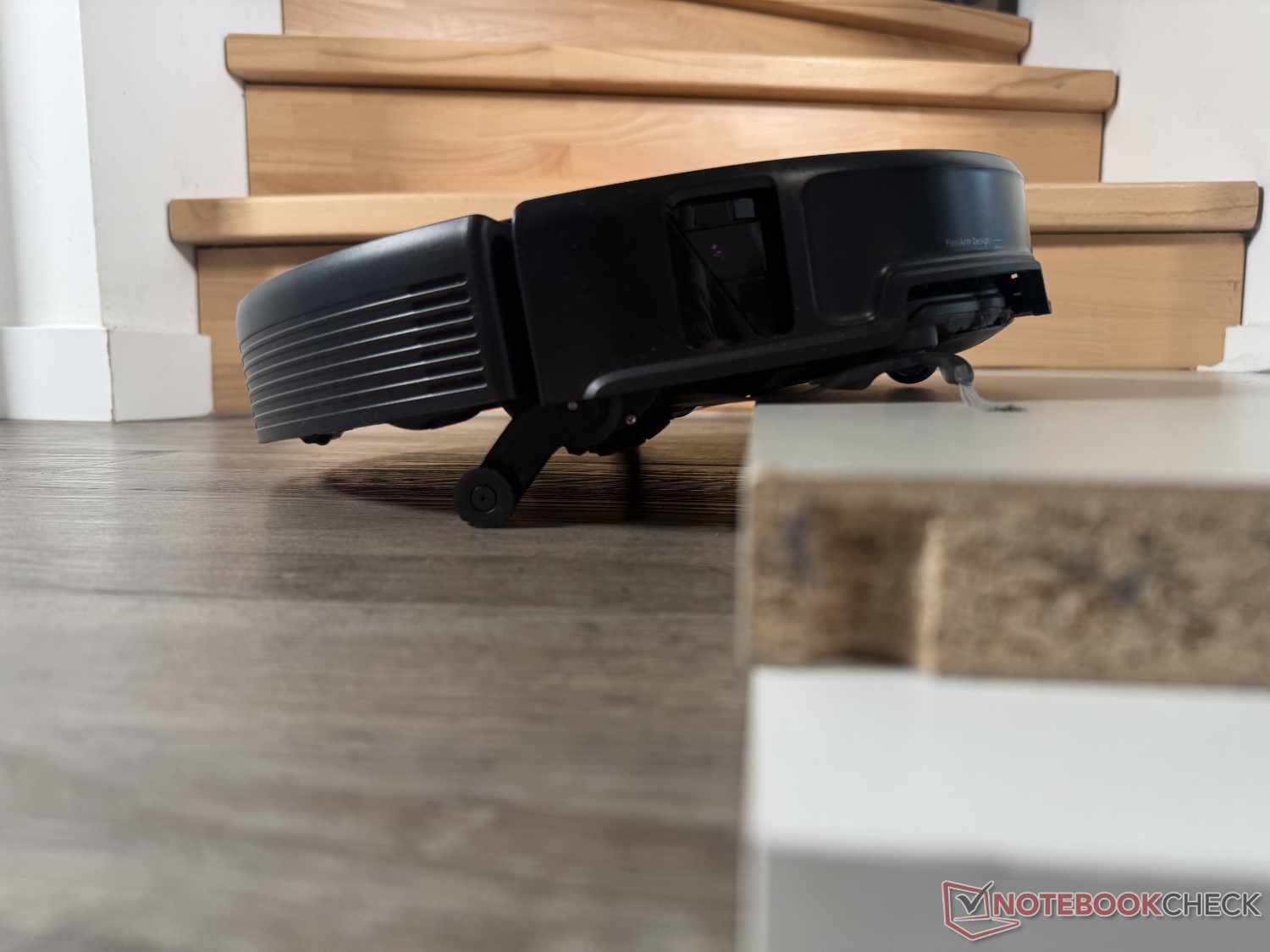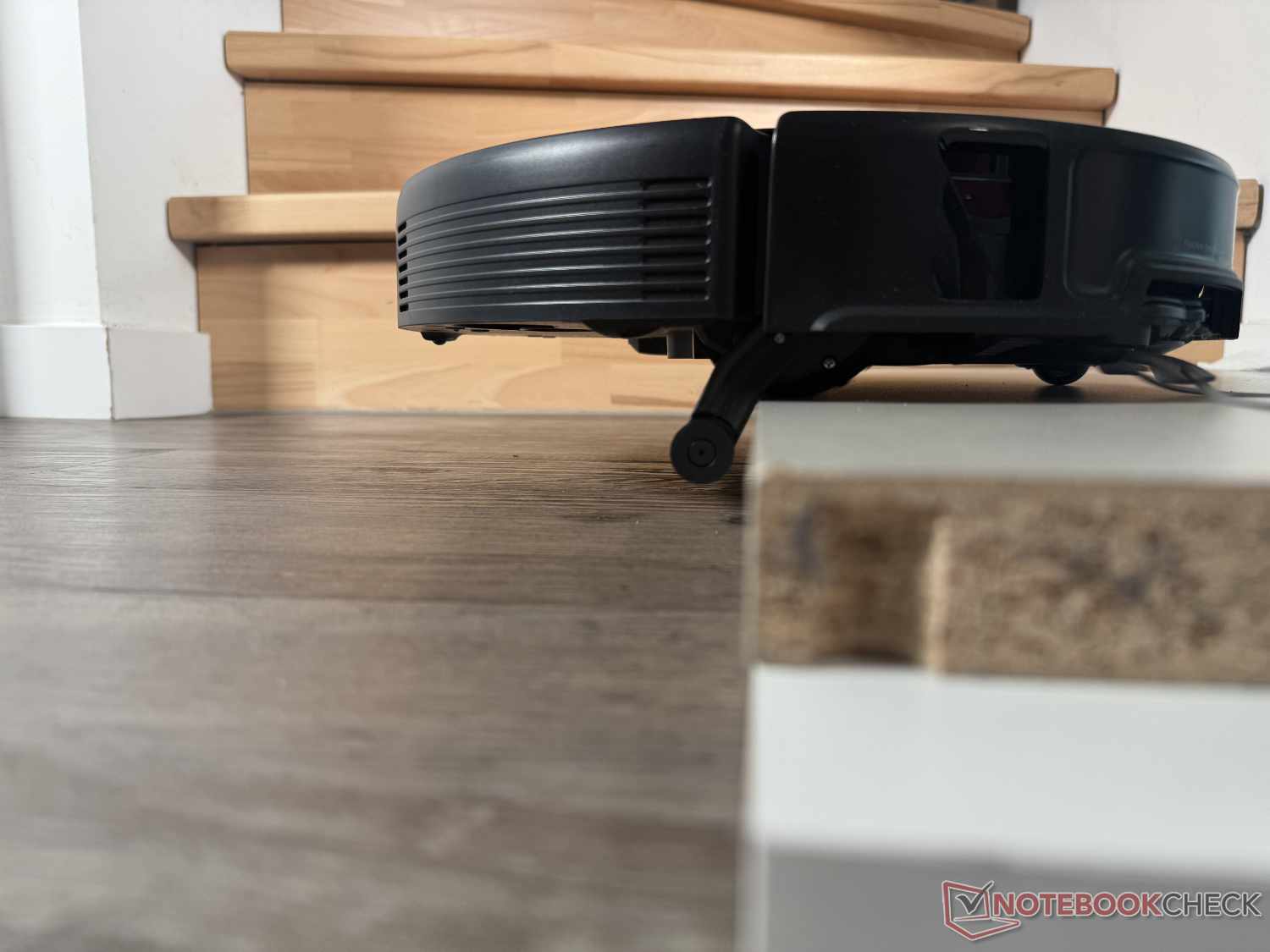 Dzięki ogromnej zdolności wspinania się do 8,8 cm (w dwóch krokach), Roborock Saros 20 może pokonać prawie każdy próg. W teście praktycznym z powodzeniem wspiął się na 90-stopniową półkę o wysokości 4,5 cm, nawet jeśli czasami wyglądało to trochę pracochłonnie. Aby to zrobić, wysuwa dwie małe nogi pomocnicze, aby najpierw podnieść się z przodu, a następnie pozwolić, aby tył podążył za nim.