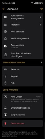 Okazuje się bardzo niezawodny w codziennym użytkowaniu, a pojemnościowy skaner linii papilarnych zapewnia wysoką szybkość rozpoznawania, ale zwykle wymaga nieco większego nacisku. Drzwi podłączone do Nuki Smart Lock można również zablokować za pomocą tylnego przycisku. Jeśli obawiają się Państwo psikusów, można wyłączyć tę funkcję.