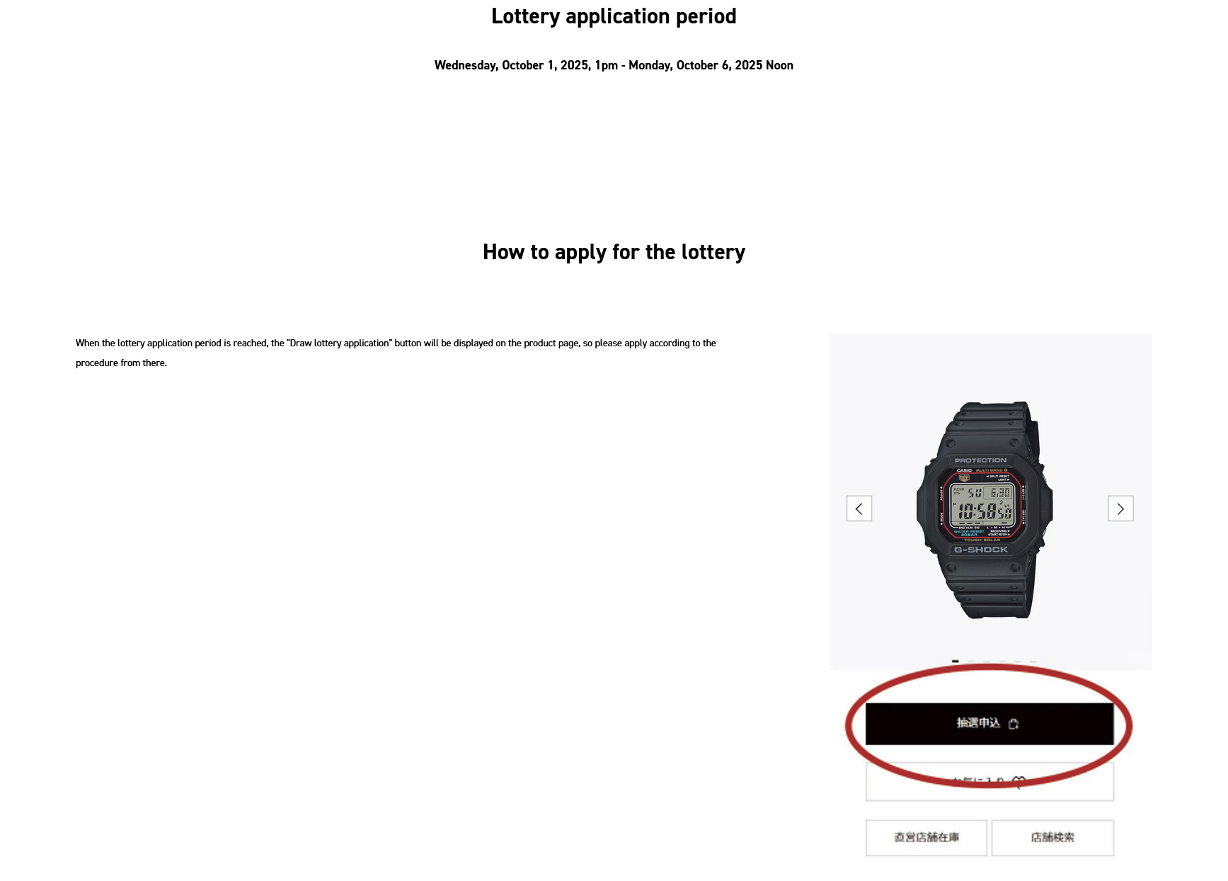 Zgodnie z Great G-Shock World, wczesne zapasy okazały się trudne do zdobycia, a wiele punktów sprzedaży detalicznej stwierdziło, że ich początkowe przydziały zostały już wyprzedane w pierwszym dniu rezerwacji. System loterii online Casio jest obecnie jedyną pozostałą drogą dla większości kupujących, a ostateczne przydziały będą prawdopodobnie bardzo ograniczone. Więcej informacji na temat aplikacji loteryjnej tutaj.