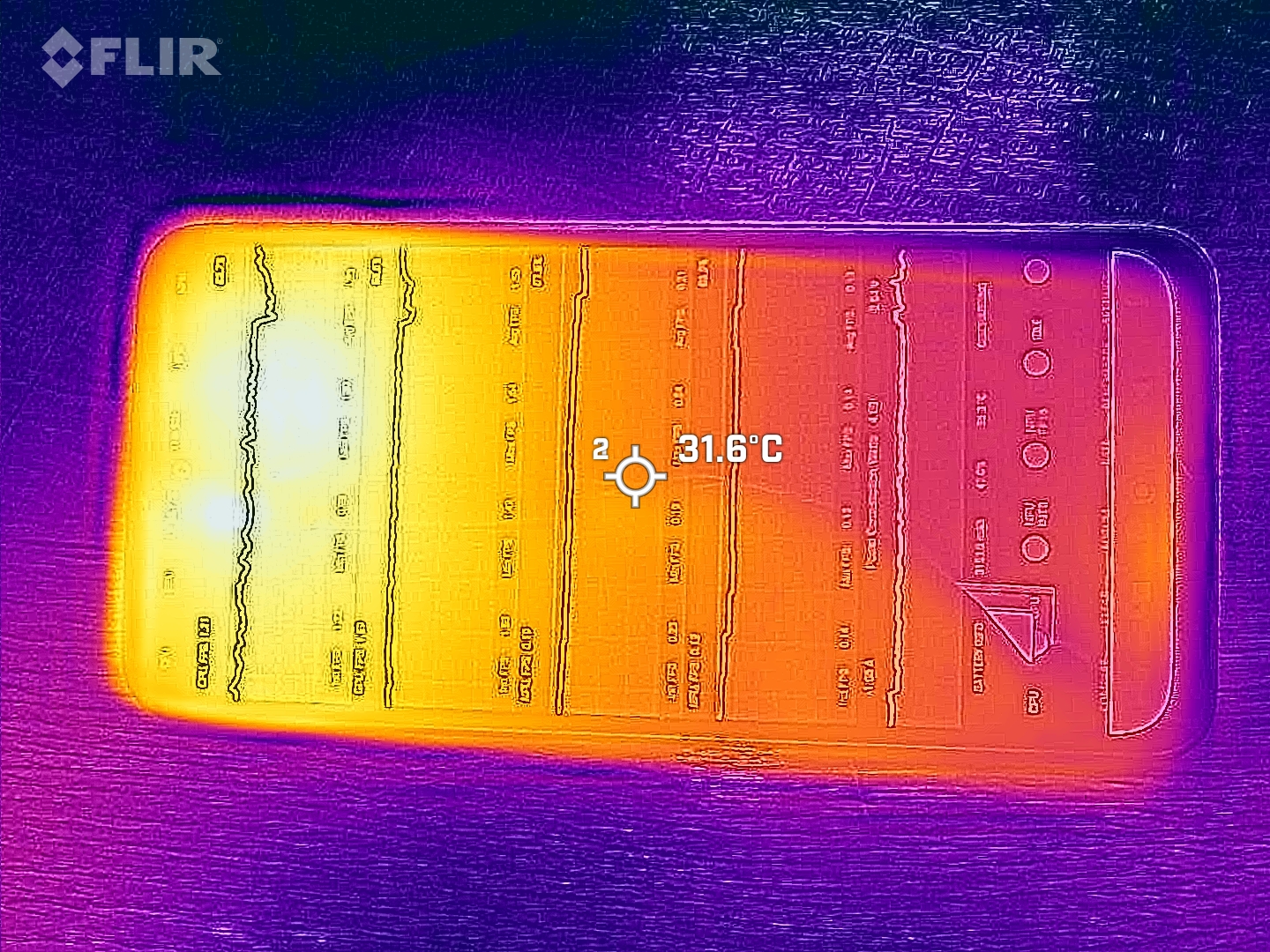 (±) Maksymalna temperatura w górnej części wynosi 40 °C / 104 F, w porównaniu do średniej 35.2 °C / 95 F , począwszy od 21.9 do 247 °C dla klasy Smartphone.