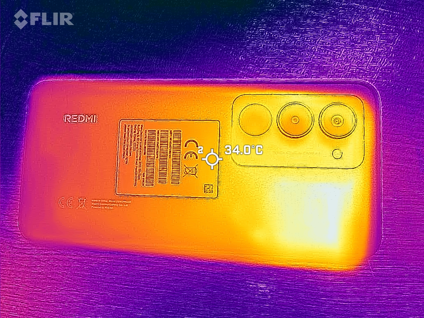 Nawet przy długotrwałym obciążeniu, Redmi 15 nie jest niekomfortowo ciepły w dłoni, ponieważ temperatura powierzchni nie przekroczyła 41 °C podczas testów.