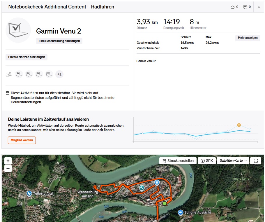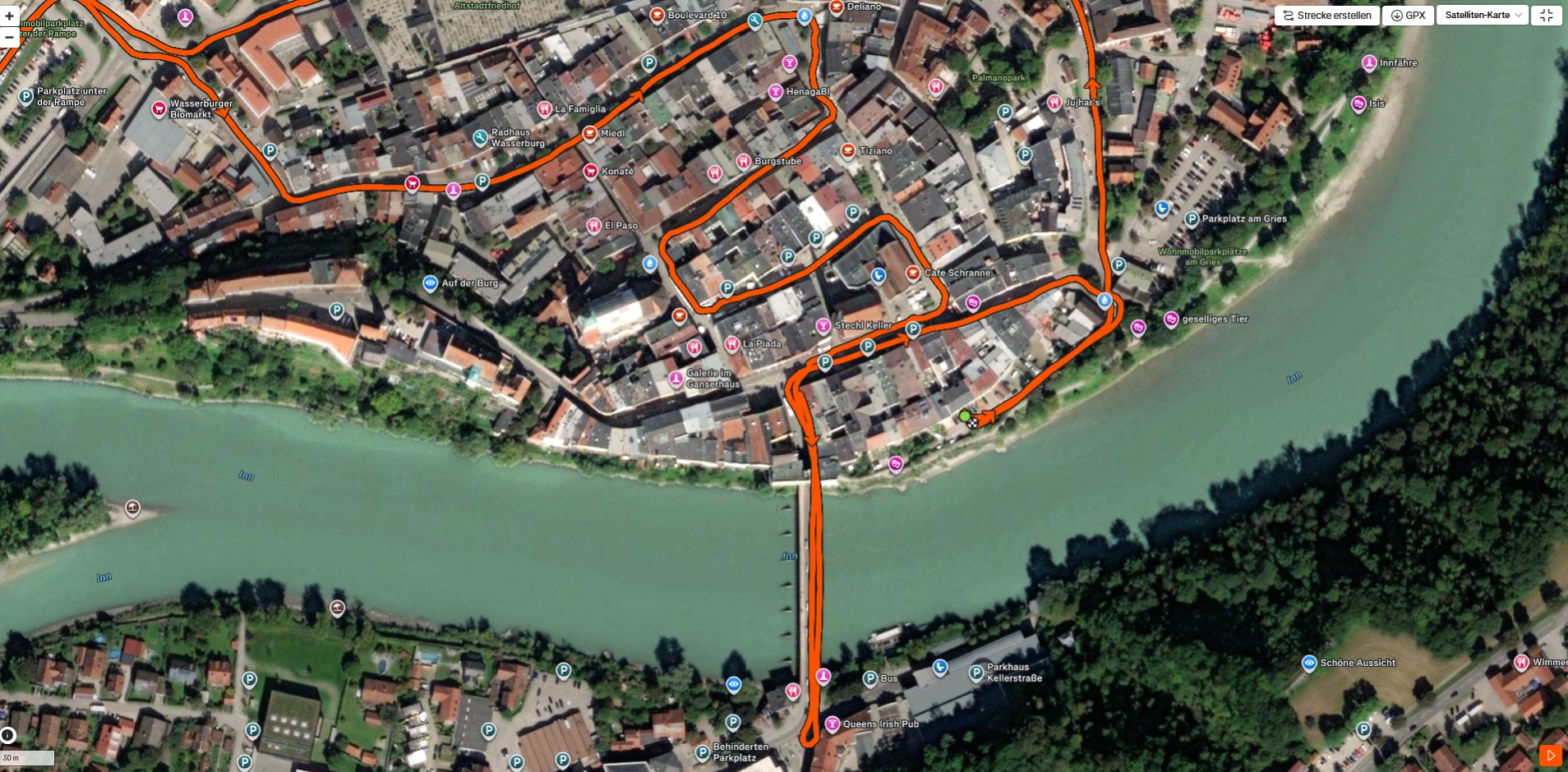 Zarówno w wąskich uliczkach starego miasta, jak i w mniej gęsto zabudowanych obszarach, urządzenie niemal konsekwentnie utrzymuje idealną linię i ogólnie jest prawie tak dokładne, jak urządzenie porównawcze, Garmin Venu 2.