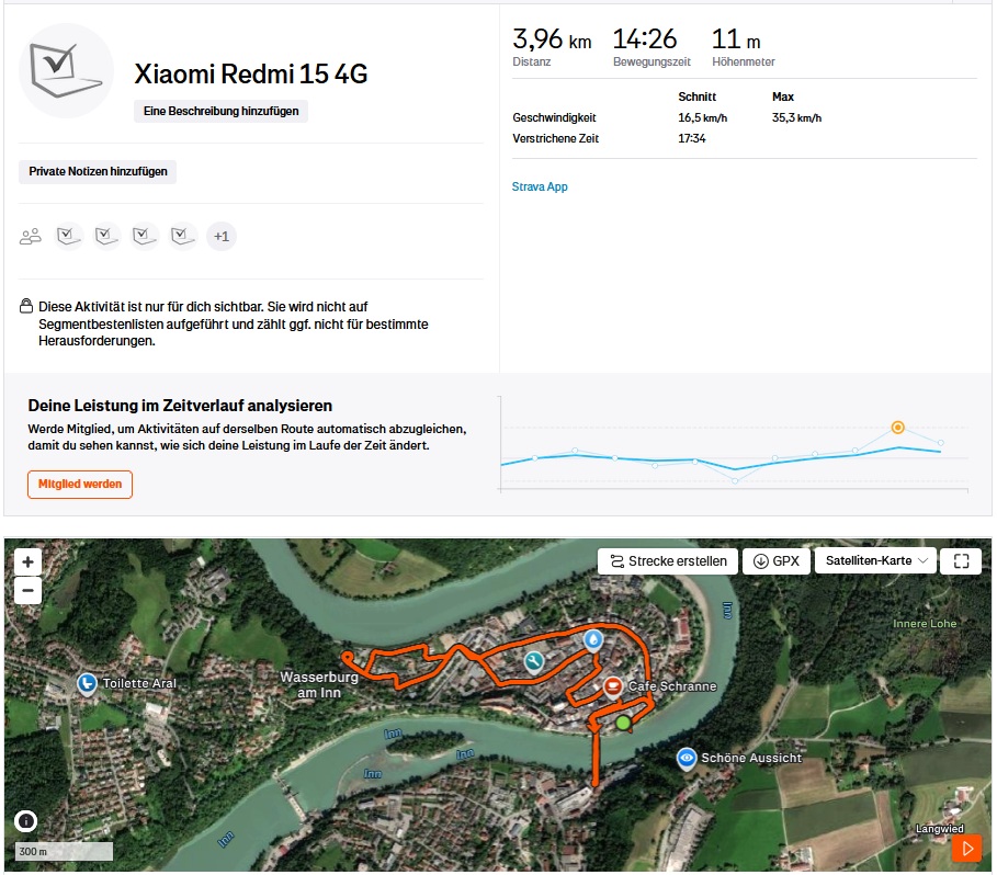 Redmi 15 obsługuje systemy satelitarne GPS, GLONASS, BeiDou i Galileo, wszystkie w trybie jednopasmowym. W rzeczywistych testach zaskakuje bardzo dobrą wydajnością nawigacji.