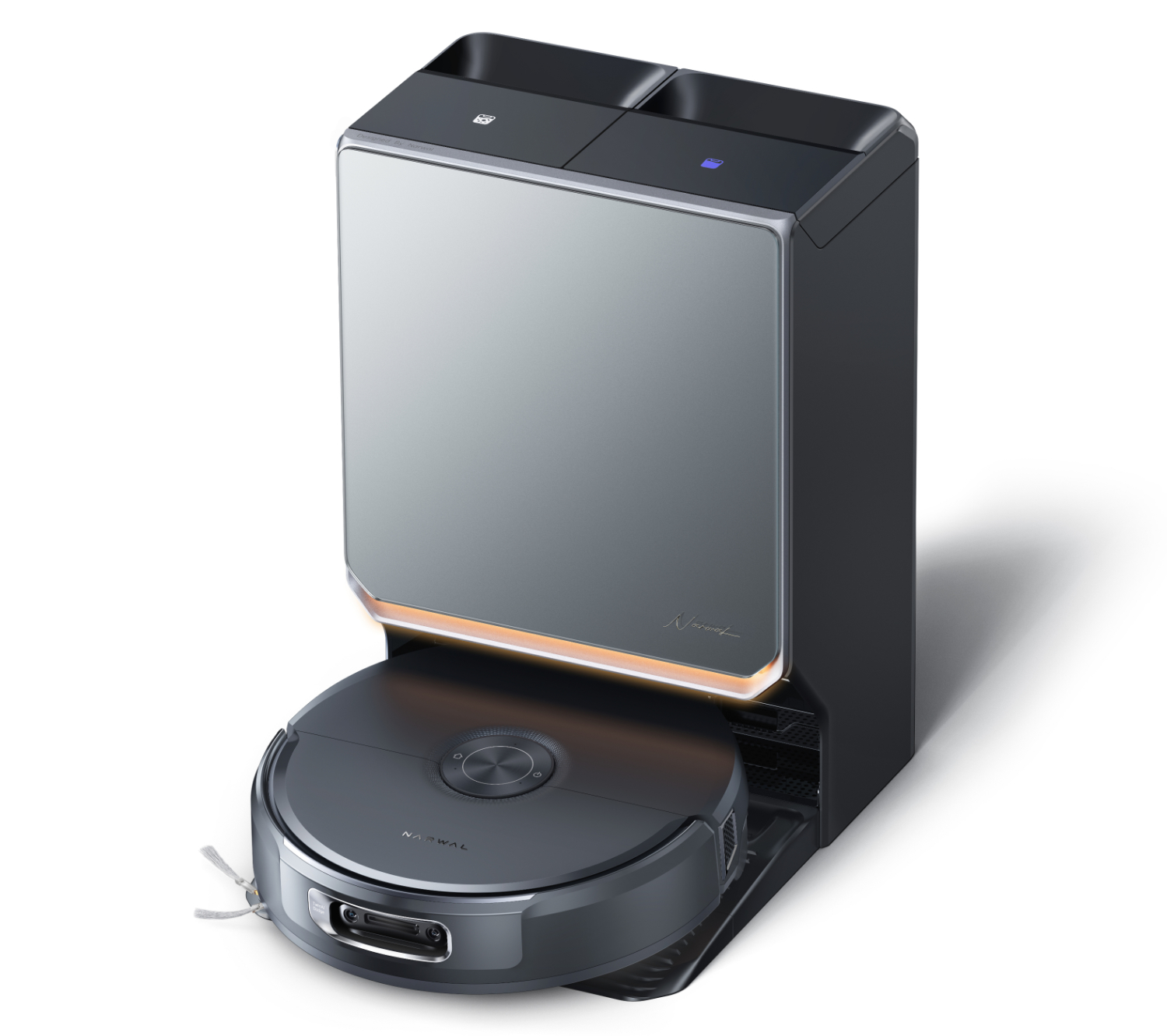 Co więcej, Flow 2 może ponownie pokonywać przeszkody do 40 mm i pozostaje stosunkowo smukły na 95 mm - częściowo z powodu braku tradycyjnej wieżyczki Lidar. Nowy Narwal Flow 2 jest dostarczany ze znaną stacją bazową, która ma nowy wygląd i między innymi dokładnie rekondycjonuje jednostkę mopującą, dozuje roztwór czyszczący i wykonuje samooczyszczanie.