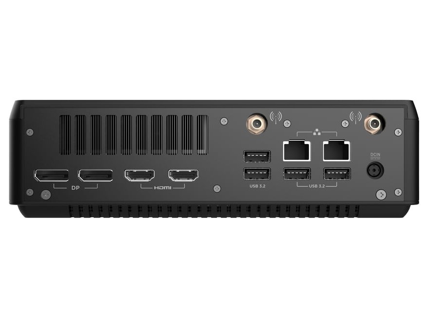 Mini-komputery Magnus EAMAX są dostarczane w tej samej kompaktowej obudowie o pojemności 2,65 litra, co Magnus EN. System mierzy 210 × 203 × 62,2 mm i zawiera potrójne gniazda M.2 (PCIe 4.0x4), podwójne porty Ethernet 2,5 GbE oraz Wi-Fi 7. Jeśli chodzi o wejścia/wyjścia, wszystkie warianty oferują jeden port USB4 40 Gb/s, pięć portów USB-A 3.2, dwa wyjścia DisplayPort 1.4, dwa porty HDMI 2.1 oraz gniazdo słuchawkowe/mikrofonowe combo.