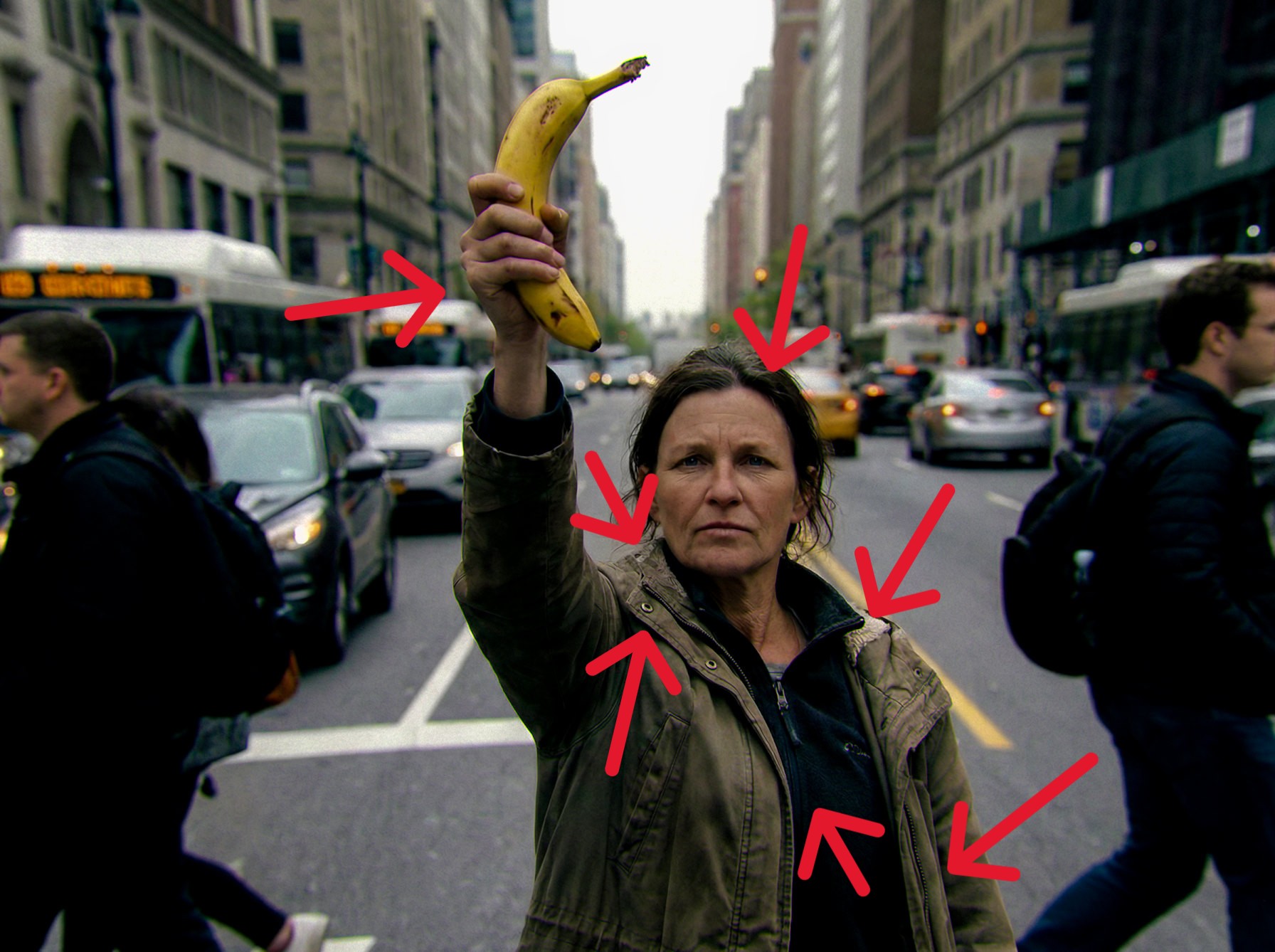 W pierwszej części naszej serii, przepuściliśmy obraz kobiety z bananem przez różne narzędzia do rozpoznawania obrazów AI. Po kilku edycjach obrazu sześć platform internetowych niestety zrezygnowało z tego obrazu i stwierdziło, że nie jest to obraz wygenerowany przez sztuczną inteligencję. Ludzkie oko i odrobina zdrowego rozsądku są w tym przypadku znacznie bardziej pomocne. Obraz ujawnia całą serię punktów wskazujących na sztuczną inteligencję. Każdy, kto pozostaje sceptyczny, powinien zdawać sobie sprawę z problemów związanych z generowaniem obrazu. Drobne szczegóły często nie są renderowane poprawnie. Należą do nich tekstury tkanin, biżuterii, dzianin, zamków błyskawicznych i innych zwykłych obiektów. Bieżniki opon i felgi w samochodach i samolotach, powierzchnie drewniane i zmarszczki na skórze często wskazują na przetwarzanie AI.