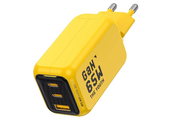 Tak czy inaczej, nowa 3-portowa składana ładowarka Aohi Youth PD PPS 65W wyróżnia się wizualnie, ponieważ większość innych produktów w tej kategorii jest szara lub czarna. Ta ma efektowny żółty design, ale model EU w rzeczywistości nie jest składany, co jest sprzeczne z jego własną nazwą produktu. Tylko wersja amerykańska może być złożona, aby zmniejszyć jej wymiary do transportu i przechowywania. Biorąc to pod uwagę, 65-watowa ładowarka jest stosunkowo kompaktowa i mierzy 72 x 43 x 35 mm.